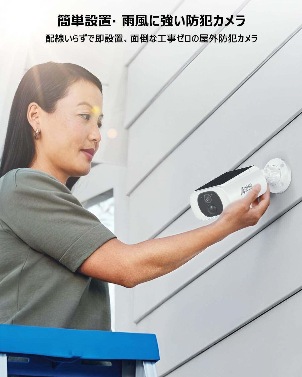 【高精細500万画素·高性能防犯システム·簡単設置】ANRAN 防犯カメラ 屋外 ソーラー 一体型 監視カメラ 屋外 電源不要 かんしカメラ 屋外 夜間カラー暗視 工事不要 取付簡単 ワイヤレス PIR人体検知 声光威嚇 即時通知 無料録画 Alexa対応 家族共有 双方向音声 MicroSDカード/クラウド対応 128GB対応 IP65防水防塵 2.4Gwifiのみ対応 5gwifi対応できない | kki