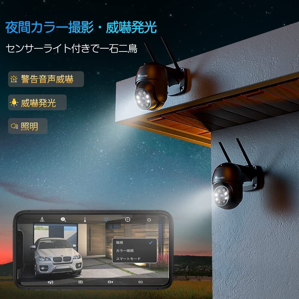 Ctronics 防犯カメラ 屋外 2個セット 自動追尾 スマホ・PC遠隔操作 AI検知 24時間録画 音光警報 ナイトカラー パンチルト 音声通話 家族共有 スマホ連動 遠隔操作 FHD1080P LANケーブルと防犯ステッカー付属 5DBiWiFi強化アンテナ クラウドストレージ・メモリーカード対応