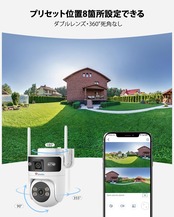 この防犯カメラはデュアルレンズを搭載し、360°全方位の監視を可能にします。AI人検知機能が搭載されており、対象を自動で追尾することで、動くものに対する監視効果が格段に向上します。お家の安全を常にキャッチしましょう!