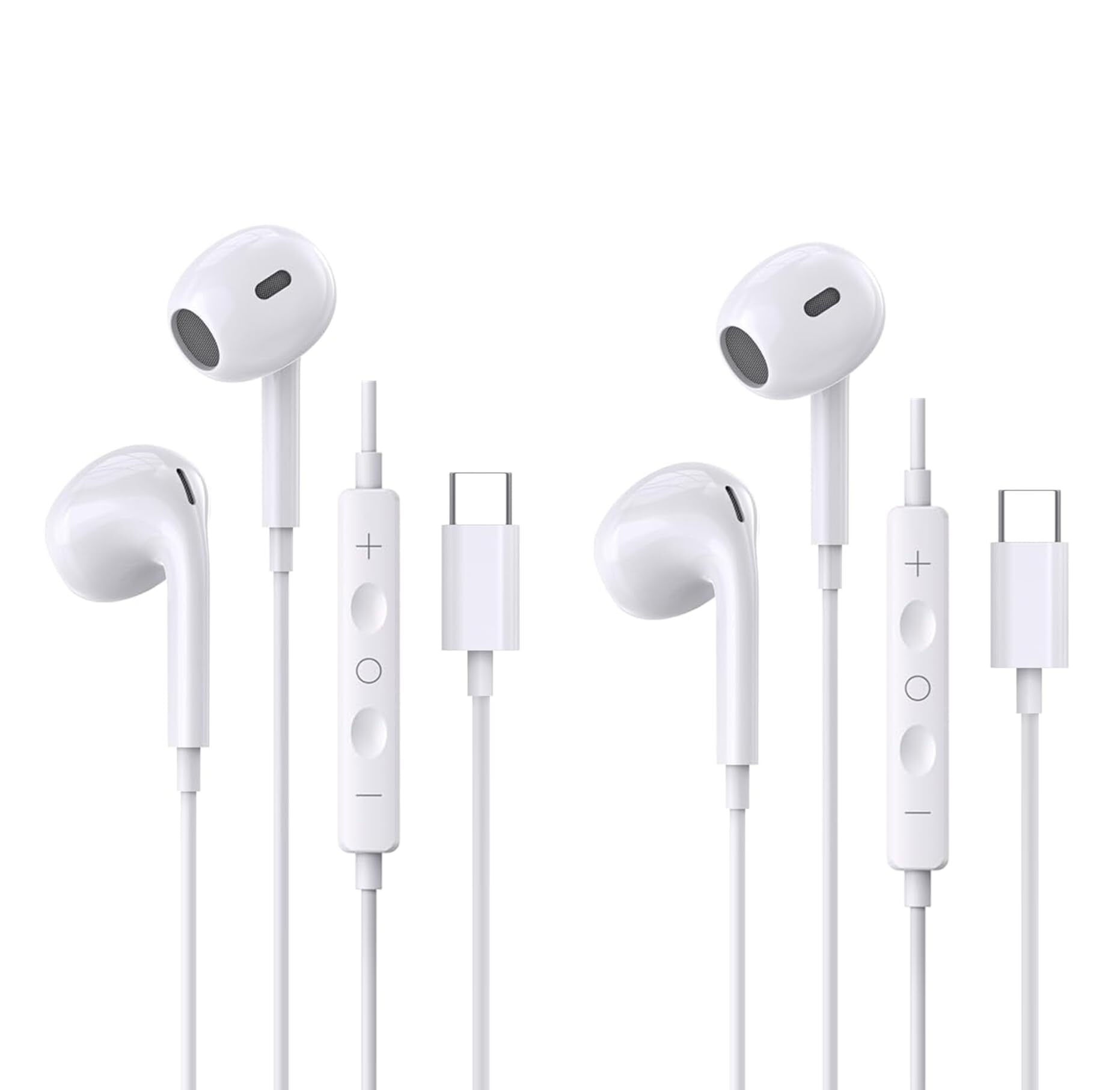 イヤホン タイプc イヤホン【iPhone17/16/15シリーズ対応2025新版 2個】人間工学に基づいた絡みに 通話対応 快適な装着感 usb c 絡み防止 遅延なし 通勤/仕事/ランニングHiFi クリア通話 小型·軽量 リモコン付き type-c /iPhone17ProMax Air/Android/Galaxy/iPadなど対応