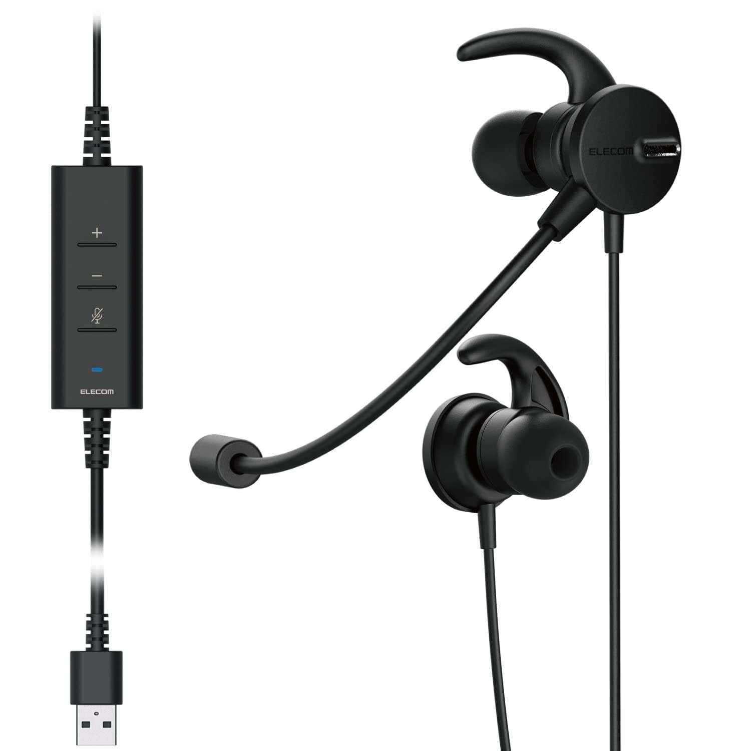 エレコム ヘッドセット USB接続 デュアルマイクノイズリダクション ミュート付 ボリューム機能付 イヤホン 両耳 ブラック HS-EP101UNCBK