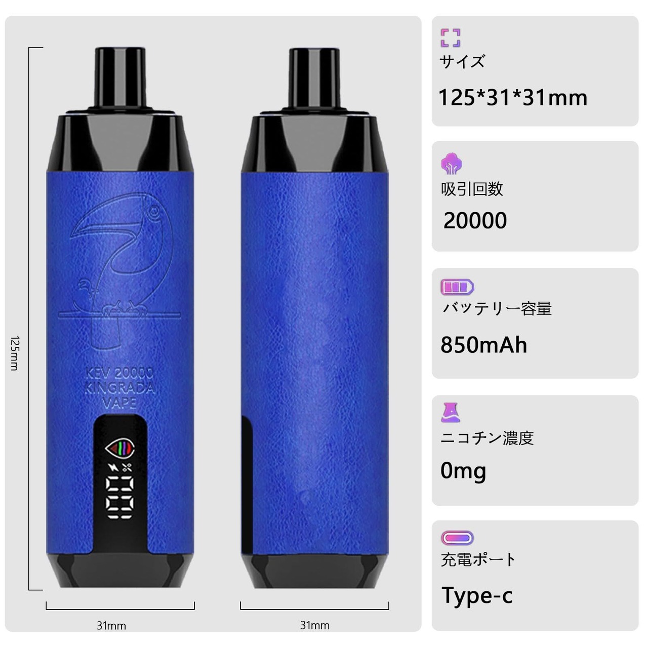 電子タバコ 使い捨て VAPE シーシャ 20,000回吸引可能 持ち運び ベイプ LEDディスプレイ搭載 充電式 爆煙 肺に直達 快感を与える 10風味 たばこ ニコチンなし タールなし 禁煙 煙量調節可能 個別防塵キャップ付き Kingrada (ブルーベリー·ラズベリー·アイス)