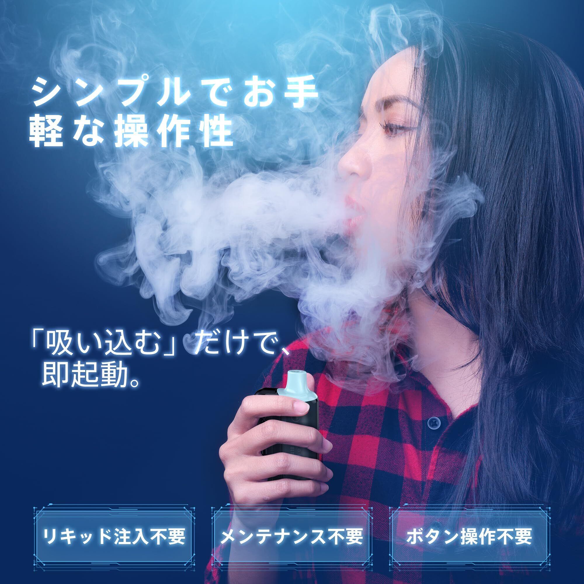 <シンプルな操作性>吸い込むだけで即起動のポケットシーシャ、リキッド注入・メンテナンス・煩わしいボダン操作が一切なし。初心者でもストレスなくカンタンに使用できます。