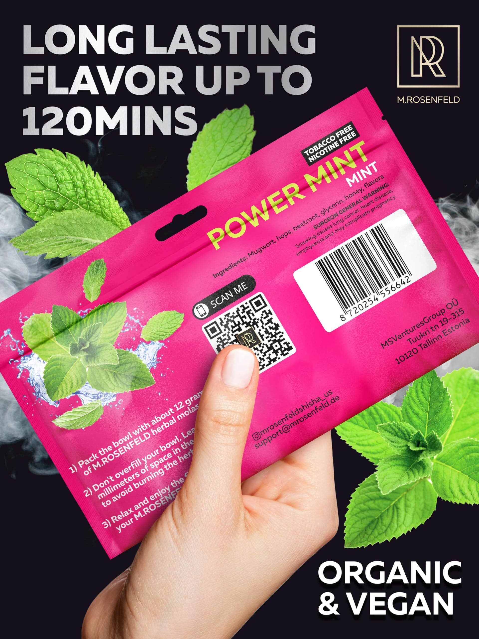 本物の味 – Power Mintの美味しくリアルなフーカタバコフレーバーの香り。100グラムのパウチ入りハーバルシーシャフレーバー。