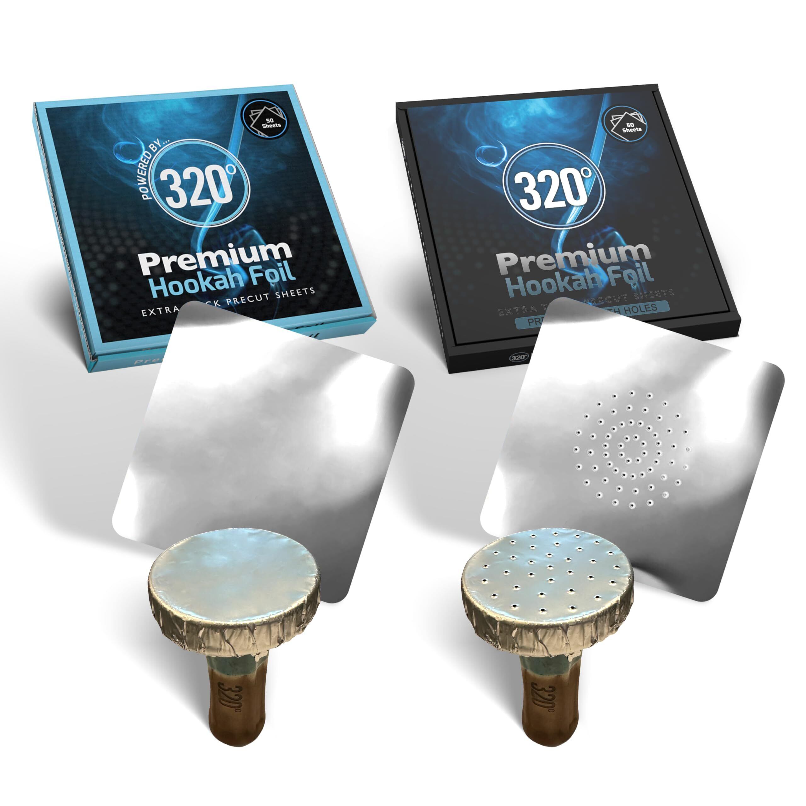 穴付き320ºホイルシート - 極厚シーシャ水ギセルアルミホイルシート - 50枚、150x150mm - 厚さ40ミクロン!ニコチンフリー