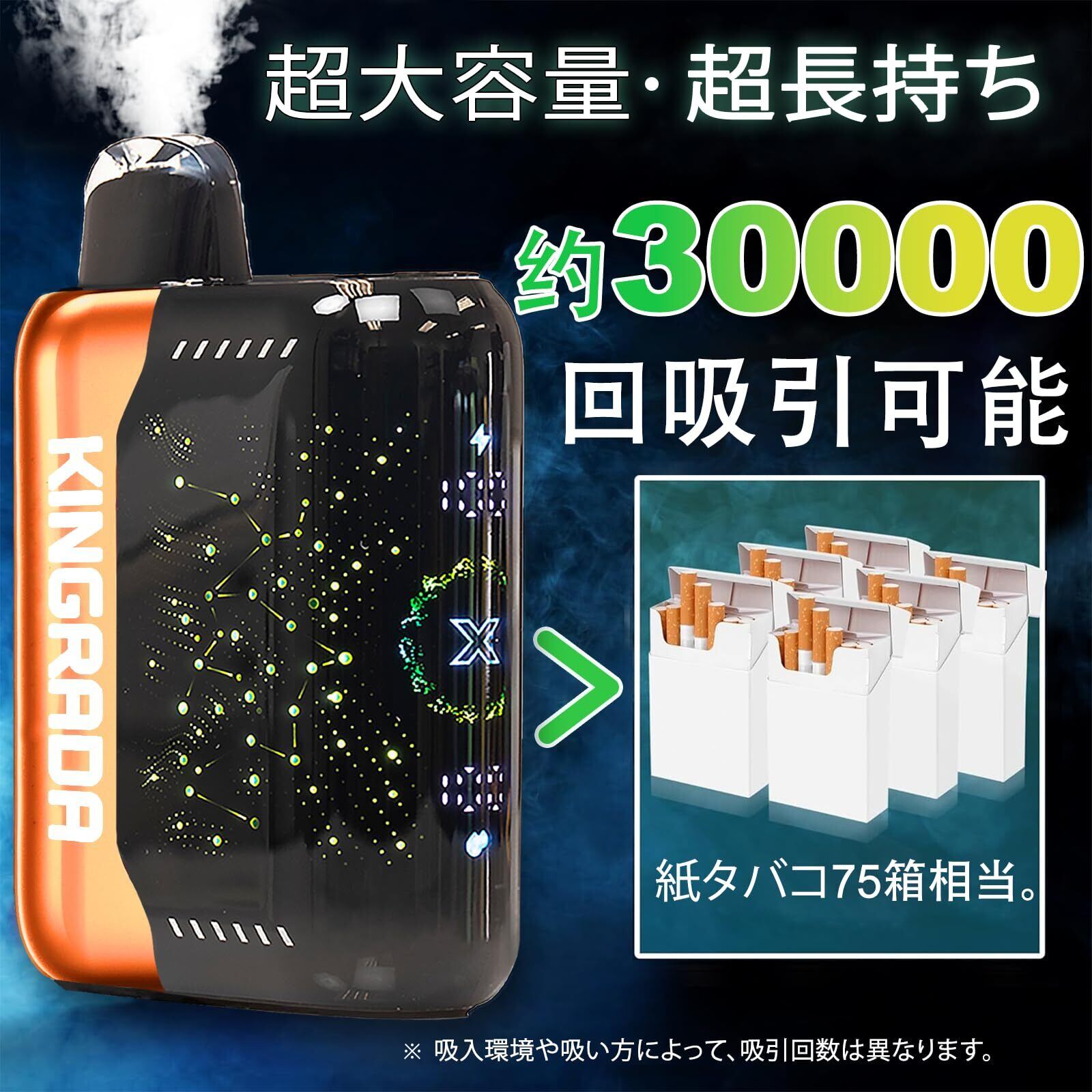 【新開発VAPE・特製フレーバー】この電子タバコは高機能バッテリーを搭載し、30,000回吸引可能です!面倒な手入れ・メンテナンス不要で、紙たばこ120箱相当で、すぐに吸えなくなるストレスから解放しましょう!Kingrada独自製法で初心者、喫煙者でも清涼感、香りや甘味のバランス抜群な満足感を得られるしっかりとした吸いごたえフレーバー多種類がお得に試せるチャンスです!