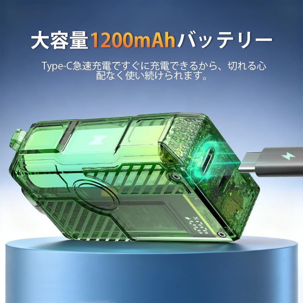 【1200mAhバッテリー&Type-C充電】ポッドキットは、1200mAhの大容量バッテリーを搭載し、Type-C充電ポートを備えています。迅速かつ便利な充電が可能で、充電時間が短縮されます。コンパクトなデザインで持ち運びやすく、いつでも手軽に使用できます。