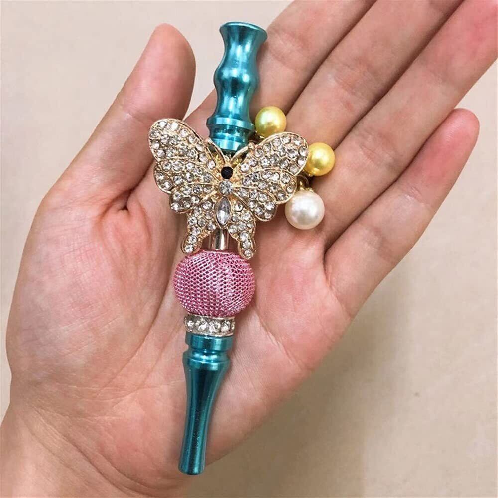 シーシャ マウスピース 女性ブリンブリン光沢のある蝶動物ジュエリーボール手作りシーシャ水ギセルマウスピースのヒントギフトバッグ (Color : Sky blue)