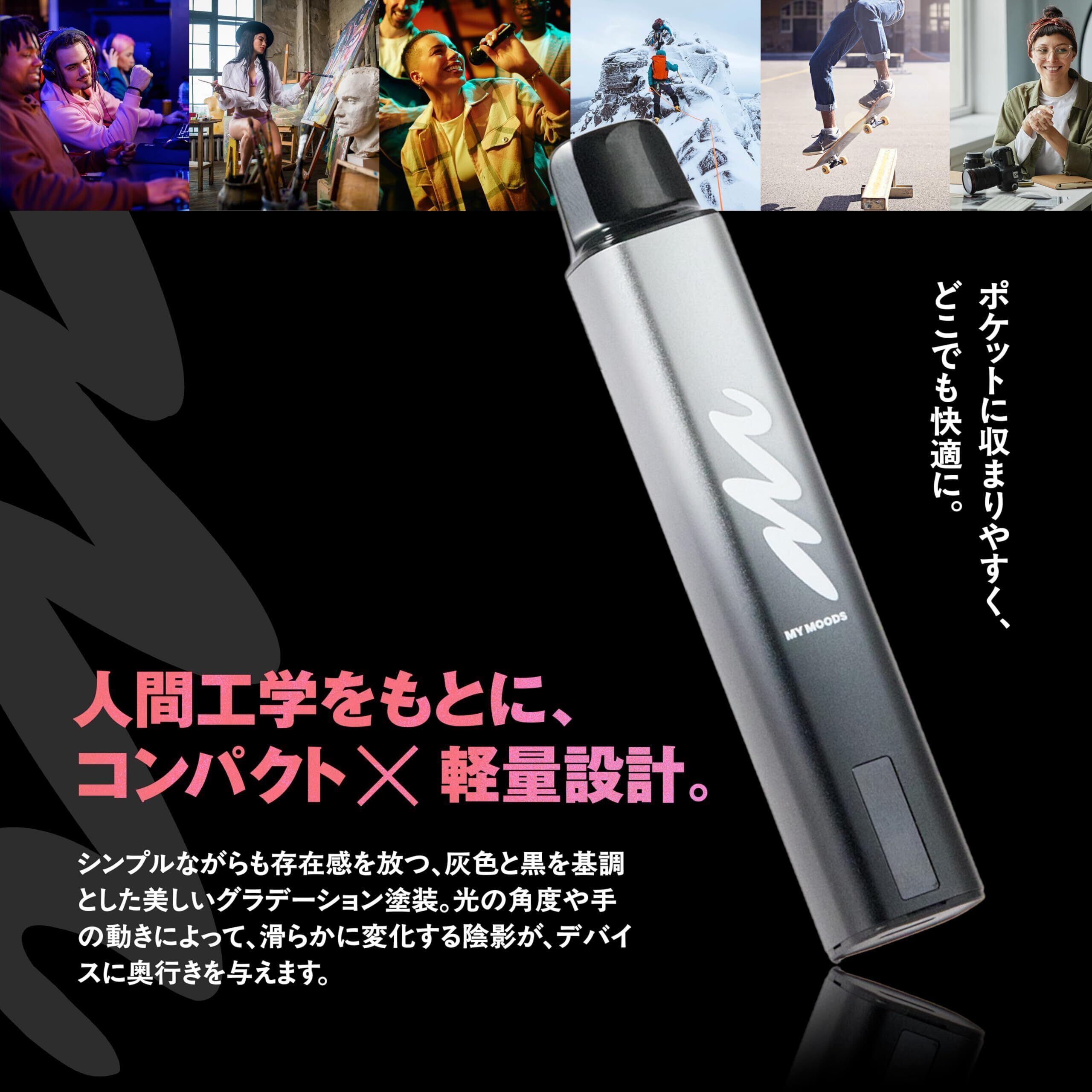 【MyMoodsとは】自己表現や個性を重んじる現代の若者たち(My)に、自分らしい気分や雰囲気、スタイル(Moods)を演出する……。MyMoodsは、ラスベガスに本拠地を構えるVAPEブランドです。「BE YOUR MOOD.」をコンセプトに、あなたの気分を、スタイルに変えるアイテムを提供します。