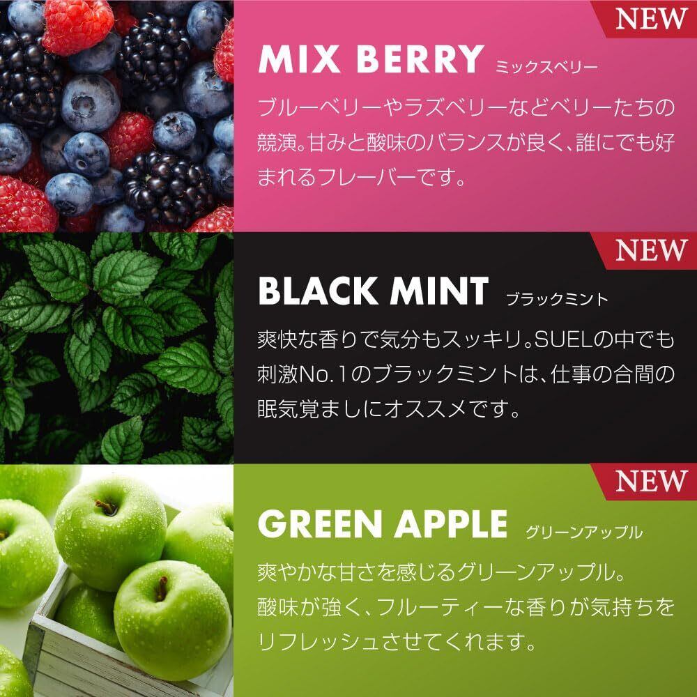 濃厚な吸いごたえ!禁煙中に吸える新習慣!! ニコチンゼロ、タールゼロ、嫌な臭いゼロ、リキッド注入ゼロ、メンテナンスゼロ。 届いた日から、これ一つで喫煙が可能◎ 追加でリキッドやフレーバーの準備や充電など、面倒なことは一切なし。 「健康」と「美味さ」を追求した最上級の電子VAPE。 SUEL(スエル)はアメリカで驚異の販売実績を叩き出した人気電子VAPEメーカー「glace」とタッグを組み開発。 日本人向けに、とことん健康と美味しさを追求しました。 本商品のSUEL(スエル)は約1500回の吸引が可能。紙たばこに換算すると、なんと!約200本(10箱=ワンカートン)分の吸引量となります。 最先端の技術により圧倒的な容量を実現。吸引ができなくなるまで風味を損ないません。 ニコチンゼロ × タールゼロで健康的にリフレッシュ。嫌な煙草臭はもちろん、歯の黄ばみ、部屋の黄ばみも発生しません。 ニコチン等の有害物質が含まれていないか厳しく検査済み。減煙や禁煙をしたい方にお勧めです。 余計な手間やストレスゼロ。 リキッド追加、充電、掃除。全部不要! 加熱式タバコのようなリキッドの交換や充電は一切不要。吸いたいときに直ぐ喫煙可能です。 ボタン操作も一切なし 吸う動作だけで起動してくれて吸い殻もナシ。軽量かつコンパクトなのでポケットに収納したり、持ち運びにも便利です。 ニコチン0、タール0だからタバコの嫌な臭いも副流煙もゼロ。 周囲の人に迷惑をかけることなく様々なシーンで楽しめます。 【全8種類の豊富なフレーバー】 1. SUPER MINT(スーパーミント) ガツンとスッキリ。刺激重視のメンソール味。 2. BLUEBERRY(ブルーベリー) 爽やかで絶妙な甘さのブルーベリー味。 3. BLACKMINT(ブラックミント) 爽快な香りで気分もスッキリ。 4. LYCHEE(ライチ) 個性的な香をもち、奄美酸味のバランスが絶妙。 5. VANILLA(バニラ) ふんわり甘くやさしい。女の子に人気のバニラ味。 6. GREENAPPLE(グリーンアップル)さわやかな甘さを感じるグリーンアップル味。 7. MASCAT(マスカット) 芳醇な甘さ溢れる果物の女王。マスカット味。 8.MIXBERRY(ミックスベリー) 甘みと酸味のバランスが良く誰にでも好かれるフレーバー。 【よくあるご質問】 Q. ニコチン・タールゼロと記載されていますが、安全性などは本当に問題ないですか? A. 本体をはじめフレイバーは、ニコチン・タールの混入がないことや、ホルムアルデヒド、アセトアルデヒド等の有害物質が含まれていないかを厳しい検査を独自に行っております。 Q. 吸っても煙が出てこず、味もしないのですが不良品でしょうか? A. 本体下部にある吸引ランプの穴を塞ぐと吸引できない仕様となっております。透明キャップを外し、指で穴を塞がない様にご使用ください。 吸引ランプ(白色点灯)が光らなくなりましたら、製品寿命が考えられます。 【使用上の注意】 ●本商品は、20歳以上の方を対象にした商品となります。 ●妊娠中の方や、体調がすぐれない方のご使用はご遠慮ください。 ●本体は、お子様の手に届かない範囲での保管をお願いします。 ●本来の目的以外での使用、改造や分解は重度の障害を引き起こす危険性がありますのでおやめください。 ●ご自身で修理を行わないでください。 ●ご使用の際は、公共のマナーや関連法令などを厳守してください。 ●体に合わないときはすぐに使用を中止して医師にご相談してください。 ●本製品は本体に電池が内蔵されているため、廃棄の仕方に注意が必要です。廃棄の際は各自治体の定める方法に従って処理をお願いいたします。 【季節のプレゼントとしてもおススメです】 1月 お年賀 正月 成人の日 2月 節分 旧正月 バレンタインデー 3月 ひな祭り ホワイトデー 春分の日 卒業 卒園 春休み 4月 イースター 入学 就職 入社 新生活 新年度 春の行楽 5月 ゴールデンウィーク こどもの日 母の日 6月 父の日 7月 七夕 お中元 暑中見舞 8月 夏休み 残暑見舞い お盆 帰省 9月 敬老の日 シルバーウィーク 10月 孫の日 運動会 学園祭 ブライダル ハロウィン 11月 七五三 勤労感謝の日 12月 お歳暮 クリスマス 大晦日 冬休み 寒中見舞い