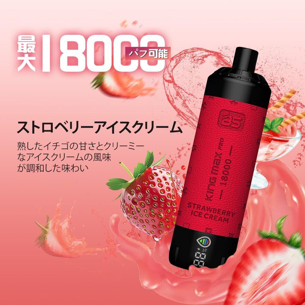 【正規品】 BS King max Pro 使い捨て電子タバコ 18000パフ可能 LEDデジタルスクリーン搭載 エアフロー調整可能 DTL対応 18k大容量ポッド 卸売対応 電子タバコ ベイプ (ストロベリーアイスクリーム/Strawberry Ice Cream) | kki