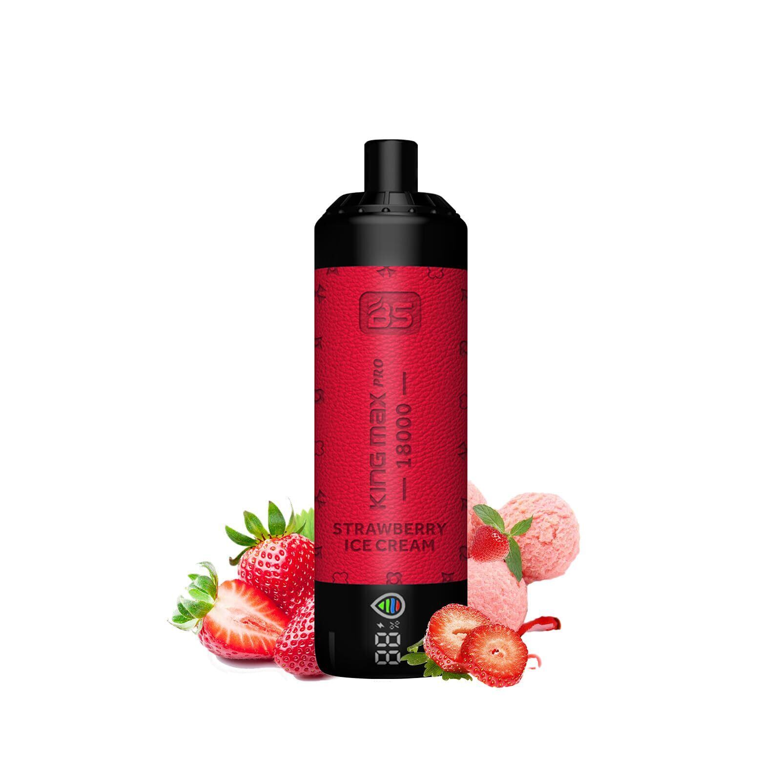 【正規品】BS King max Pro 使い捨て電子タバコ 18000パフ可能 LEDデジタルスクリーン搭載 エアフロー調整可能 DTL対応 18k大容量ポッド 卸売対応 電子タバコ ベイプ (ストロベリーアイスクリーム/Strawberry Ice Cream)