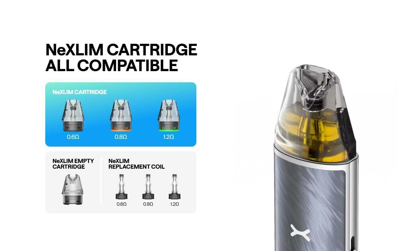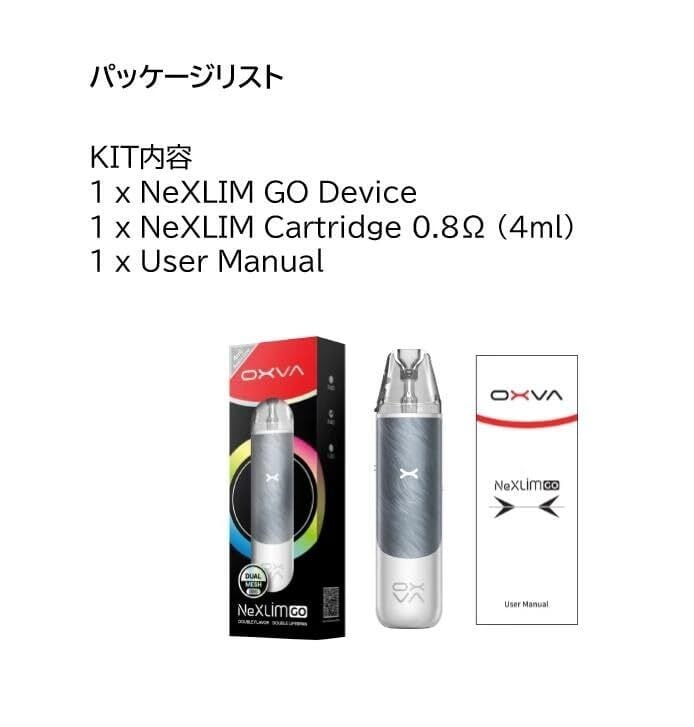 OXVA NeXLIM GO リキッドなどの液体物は含まれていません。 ニコチンは入っていません。