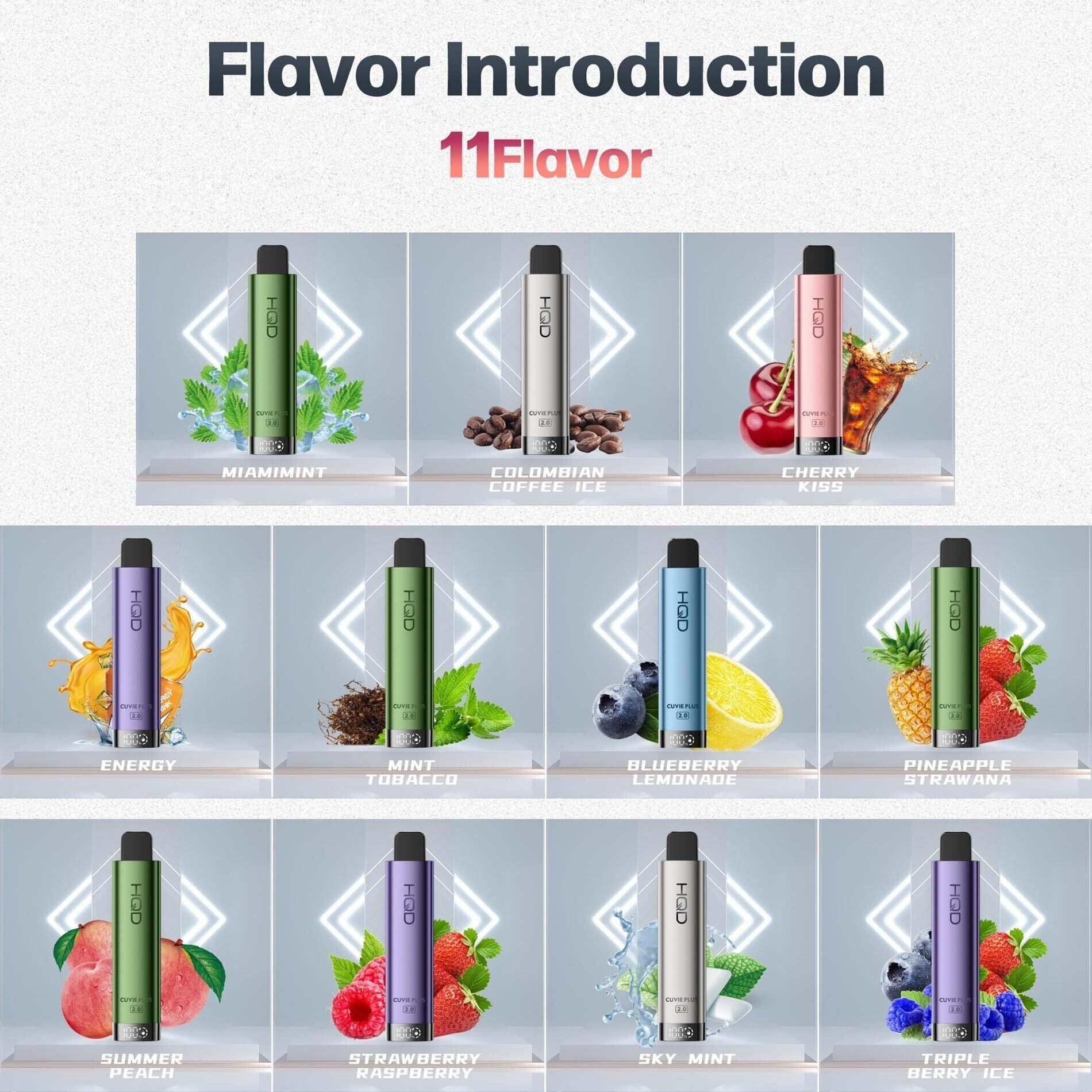 HQD CUVIE PLUS2.0は全11種類の多彩なフレーバーをラインナップ。お好みに合わせて選ぶことができ、シーンごとに異なる味わいを楽しめます。自宅でのリラックス時間やアウトドアイベントなど、様々なシーンで活躍する商品です。