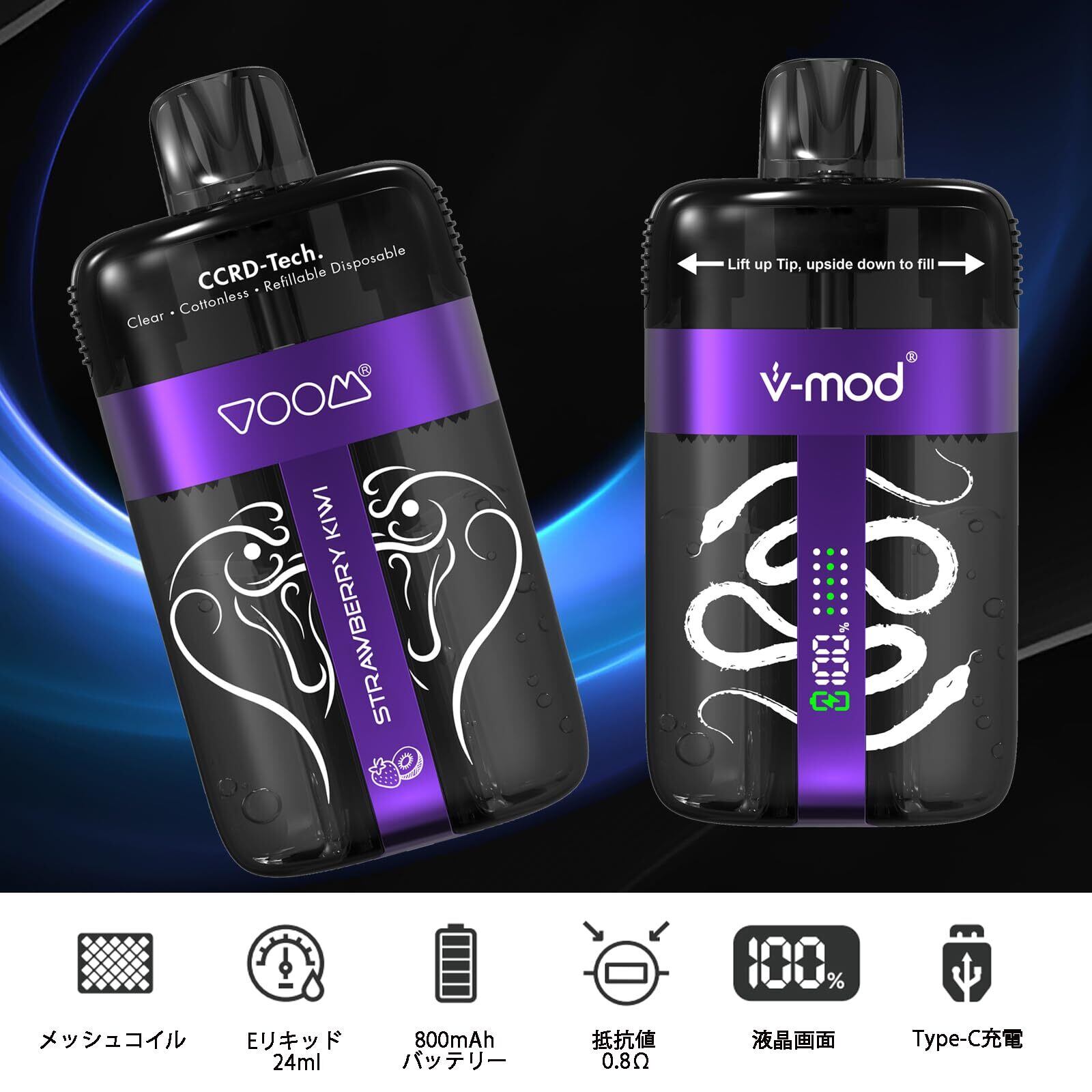 この電子タバコは、最大50000回の吸引が可能な驚きの仕様です!850mAhの大容量バッテリーを搭載し、ストロベリーキウイアイスフレーバーを楽しむことで、甘酸っぱさと心地よいアイス感が交わり、長時間にわたり満足感を得られます。