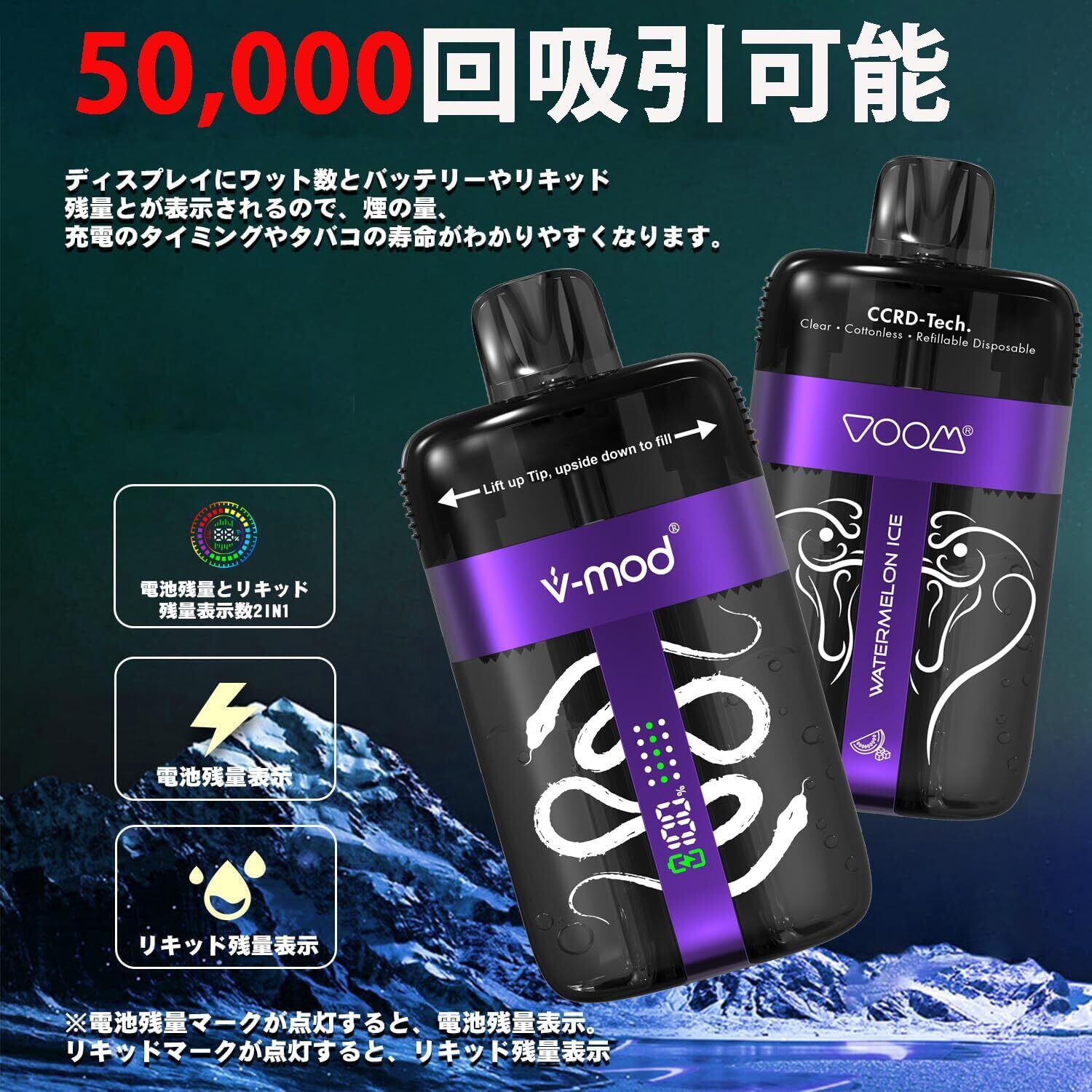 【驚きの吸引回数50000回電子たばこ】当社のベイプ 使い捨て 爆煙は大容量設計で、25mlのタバコオイルがあらかじめ充填されており、従来のタバコ200箱分に相当する最大50,000回の吸引が可能です。通常の電子タバコと比べて、この電子タバコは使い勝手が良く、煙の爆発力も強いです。初心者でも電子タバコ愛好家でも、あなたのニーズを満たすことができます。