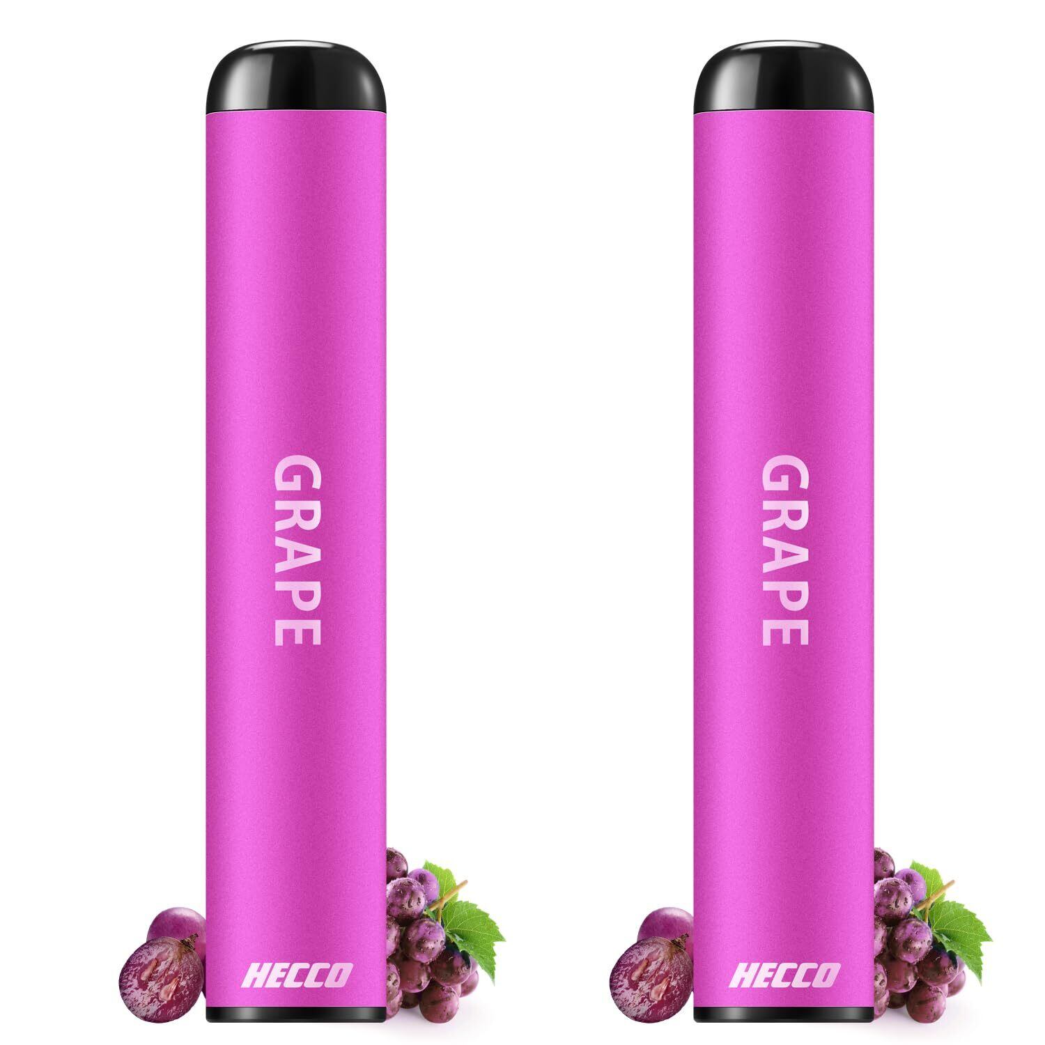 HECCO 使い捨て 電子タバコ ぶどう 葡萄 ポケットシーシャ 約900回吸引可能 0.7cm超薄型 水蒸気タバコ 禁煙グッズ 電子タバコスティック 持ち運びシーシャ ニコチンなし vape 2本セット D01