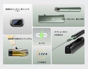 底面のLEDディスプレイでバッテリー残量を一目で確認可能。