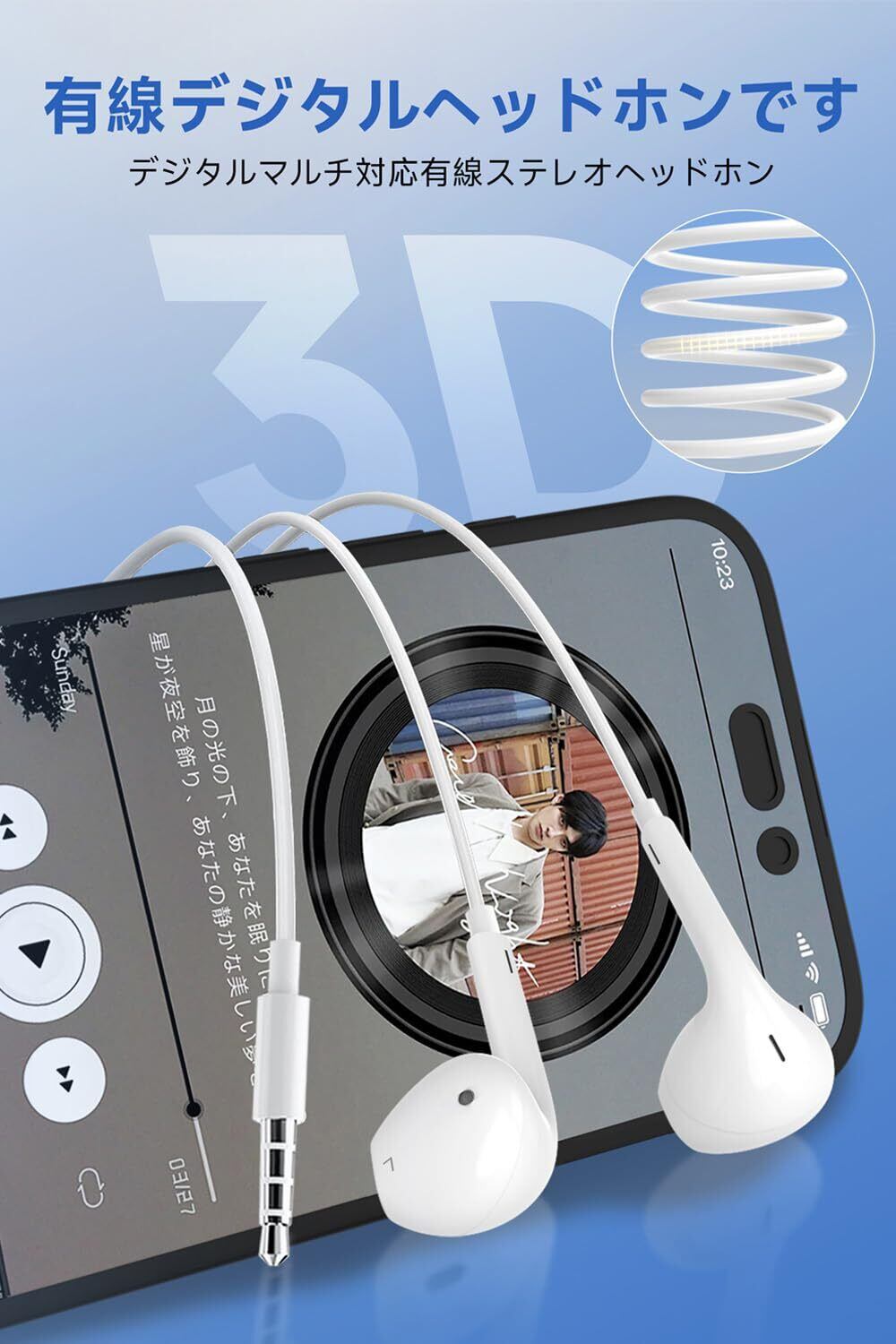 イヤホン 有線 有線イヤホン 【2025年新バージョン 3.5mmジャック】超クリアな通話&雑音なし マイク付き HIFI音質 音量調整 DAC重低音 人間工学 ノイズキャンセリング 通話可能 ハイレゾ クリア通話 ステレオイヤフォン ヘッドホン pc/Android/iPhone対応 通勤/会議/仕事/ゲームに最適(白)