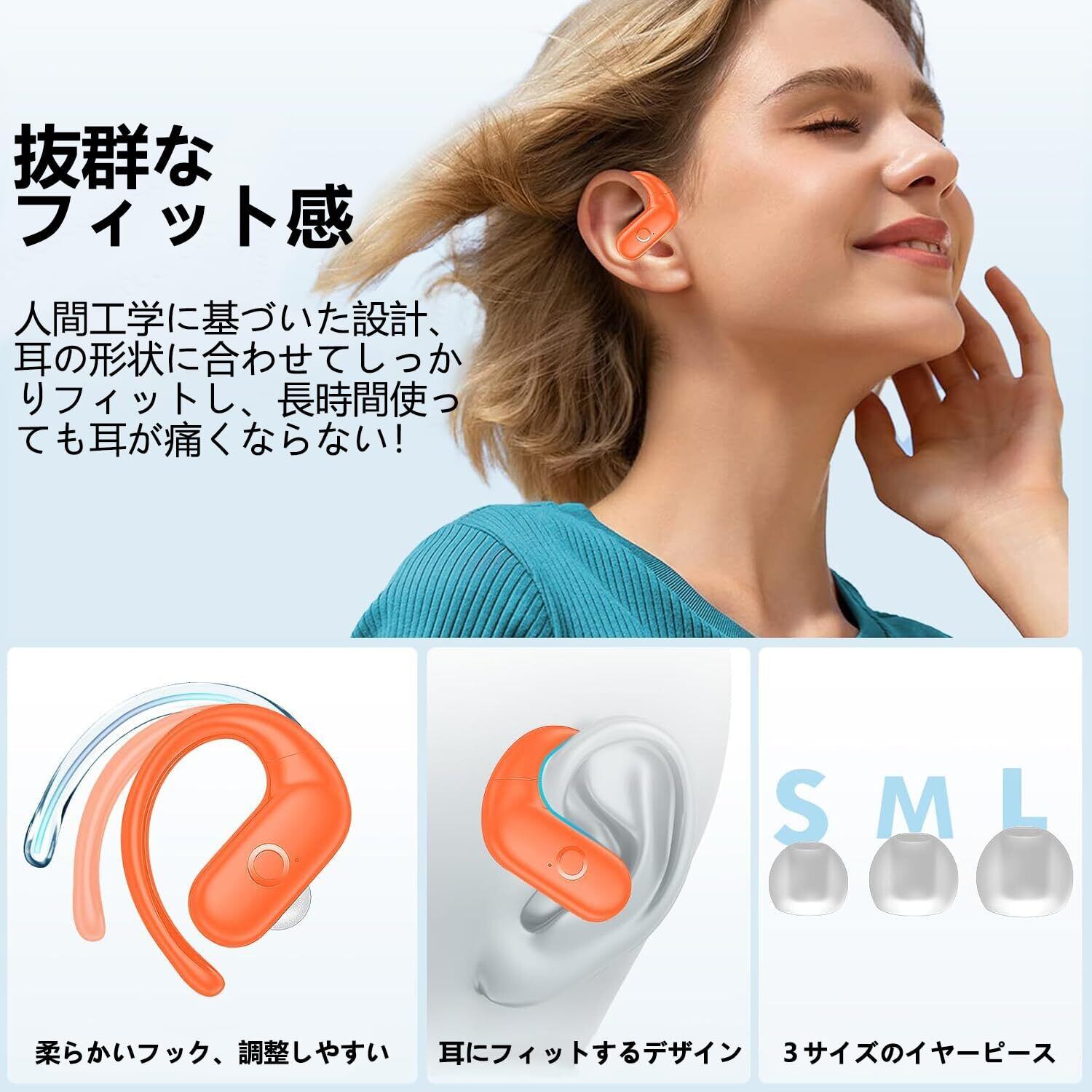 イヤホン bluetooth ワイヤレスイヤホン【2025最新 インイヤー式と耳掛け式の組み合せる イヤホン】Bluetooth5.4搭載 最大48時間再生 カルナ型 イヤフォン ブルートゥースヘッドセット Hi-Fi音質 ENC通話 自動ペアリング 接続瞬時 ハンズフリー通話 タッチ操作 小型/軽量 iPhone/Android/Pad適用 スポーツ/通勤/通学/WEB会議(オレンジ)