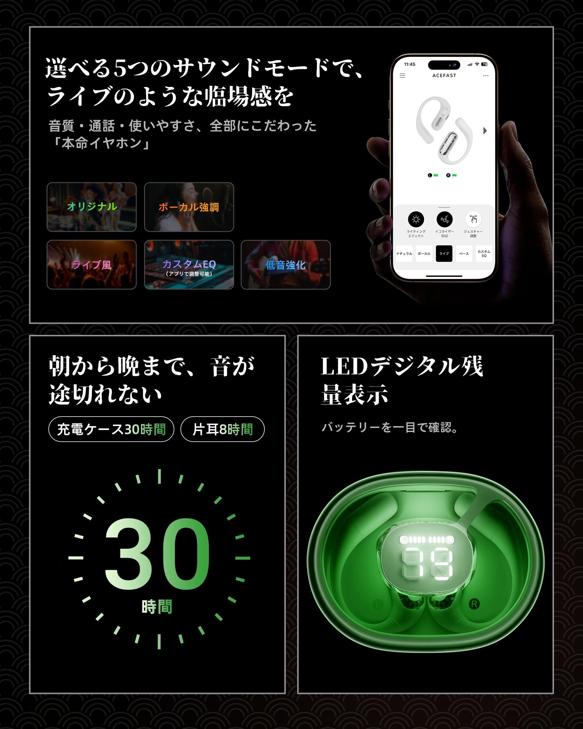 このACEFAST オープンイヤー イヤホンで、あなたのアクティブなライフスタイルをより一層楽しみましょう!皆様のご注文を心よりお待ちしております!