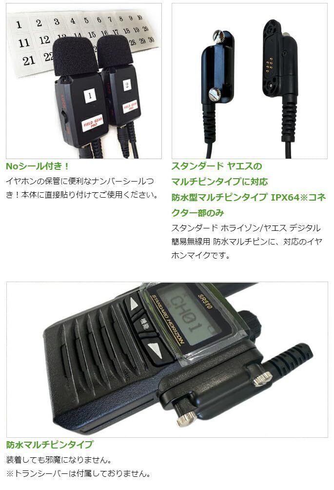 スタンダード ヤエス対応 インカム イヤホンマイク デジタル 簡易無線 防水型マルチピンタイプ 業務現場用 PRO仕様 2wayカナル型 VXD20 VXD30 SR510 SR730 SR740 用 SSM-56C EK-313-581 EK-505W 互換品 FIELD GEAR FGPROSRCP | kki