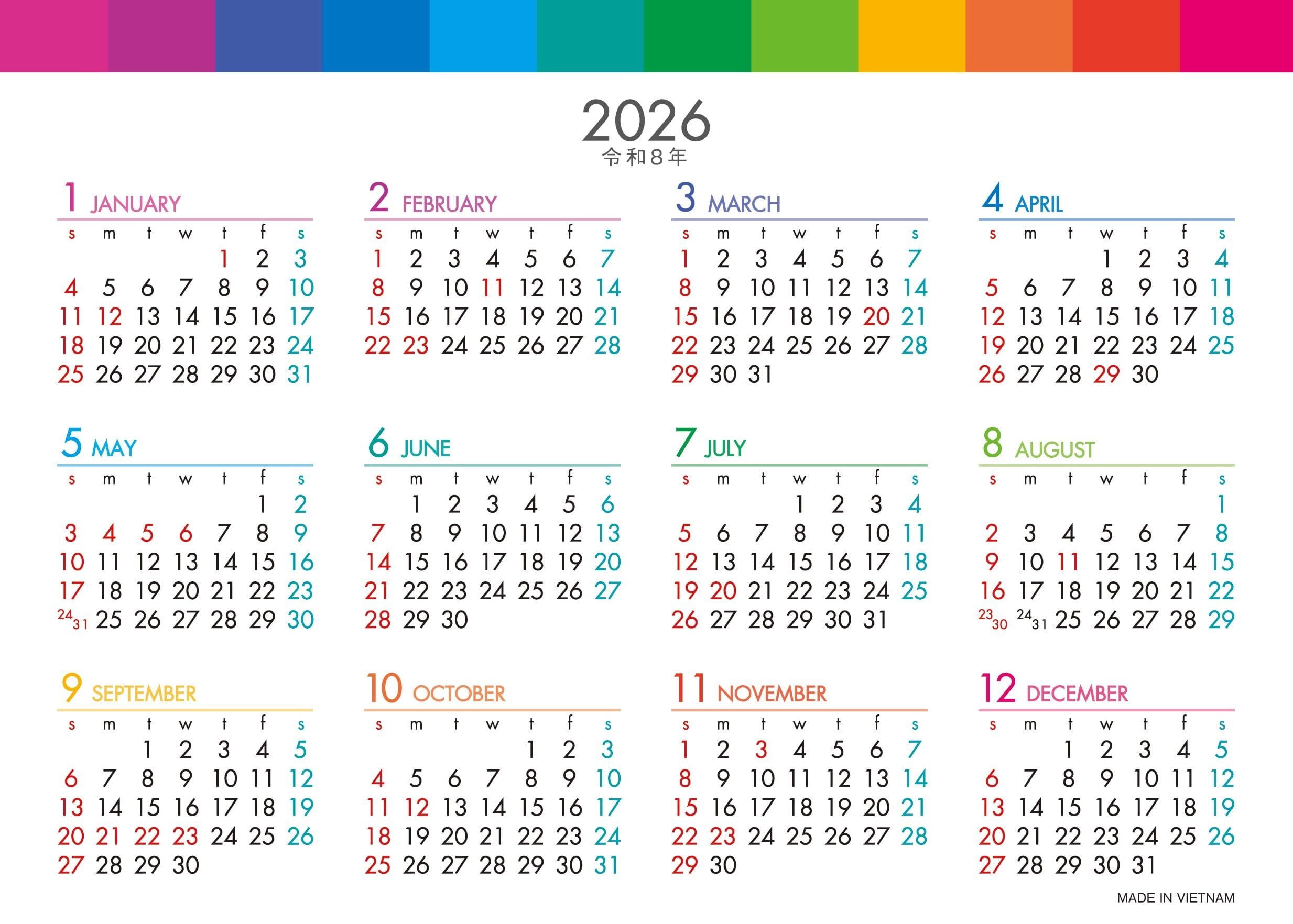 皆様のご注文を心よりお待ちしております。このビビッドカラースケジュールで、充実した2026年を共に過ごしましょう!