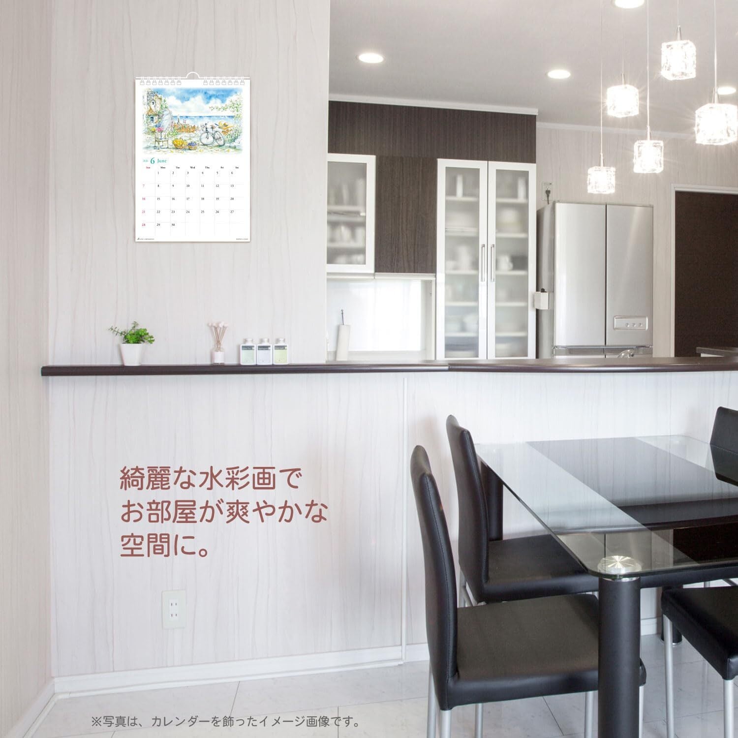 サイズは300×420mmで、視認性の高い壁掛けタイプです。大きな日付欄が特徴で、計画やイベントの管理がしやすくなっています。また、六曜入りで、日常のスケジュールをサポートしてくれます。素敵なデザインがインテリアをデコレーションし、おしゃれな生活空間を演出します。