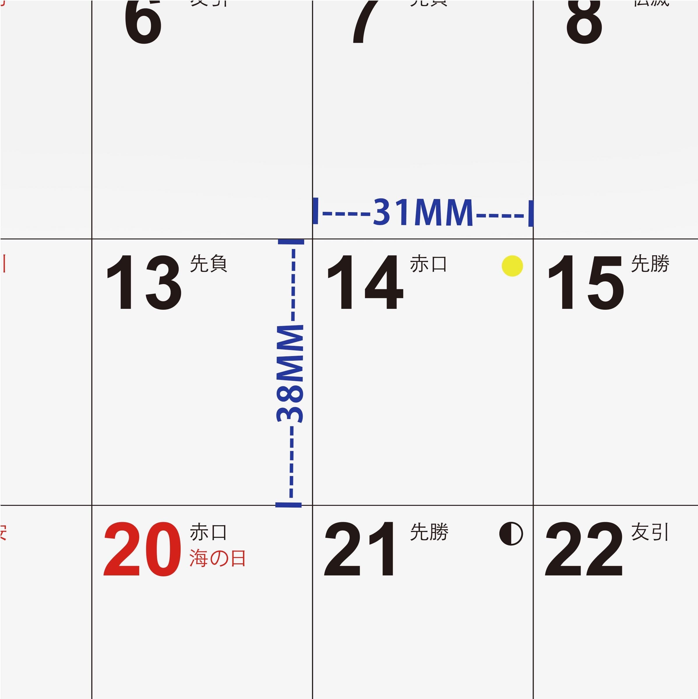 使いやすい大きな太字タイプのカレンダーには、六曜の情報も掲載されており、大切な行事や予定をしっかりと把握できます。日付や予定が書き込みやすく、様々な用途にお応えする仕様です。