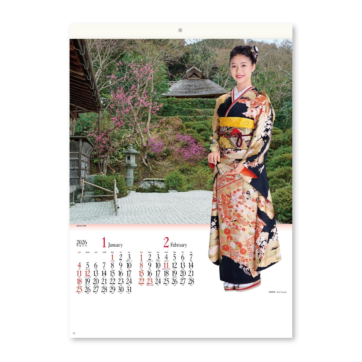 新日本カレンダー 2026年 カレンダー 壁掛け みやび・和装と庭園 年表付 NK59
