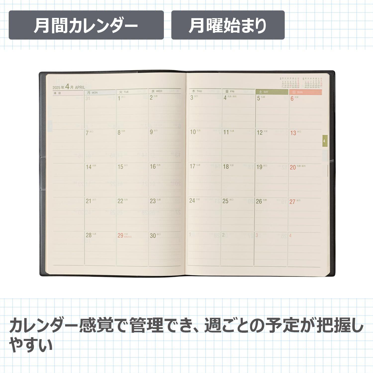 能率 NOLTY 手帳 2025年 B5 ウィークリー 能率手帳 月間ブロック 黒 6126 (2024年 12月始まり)
