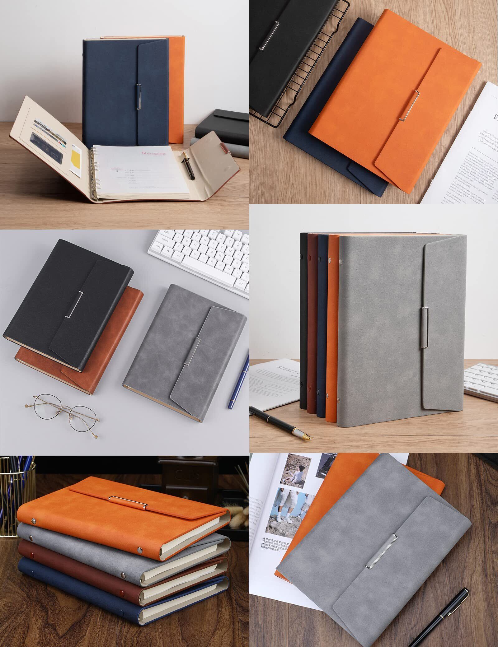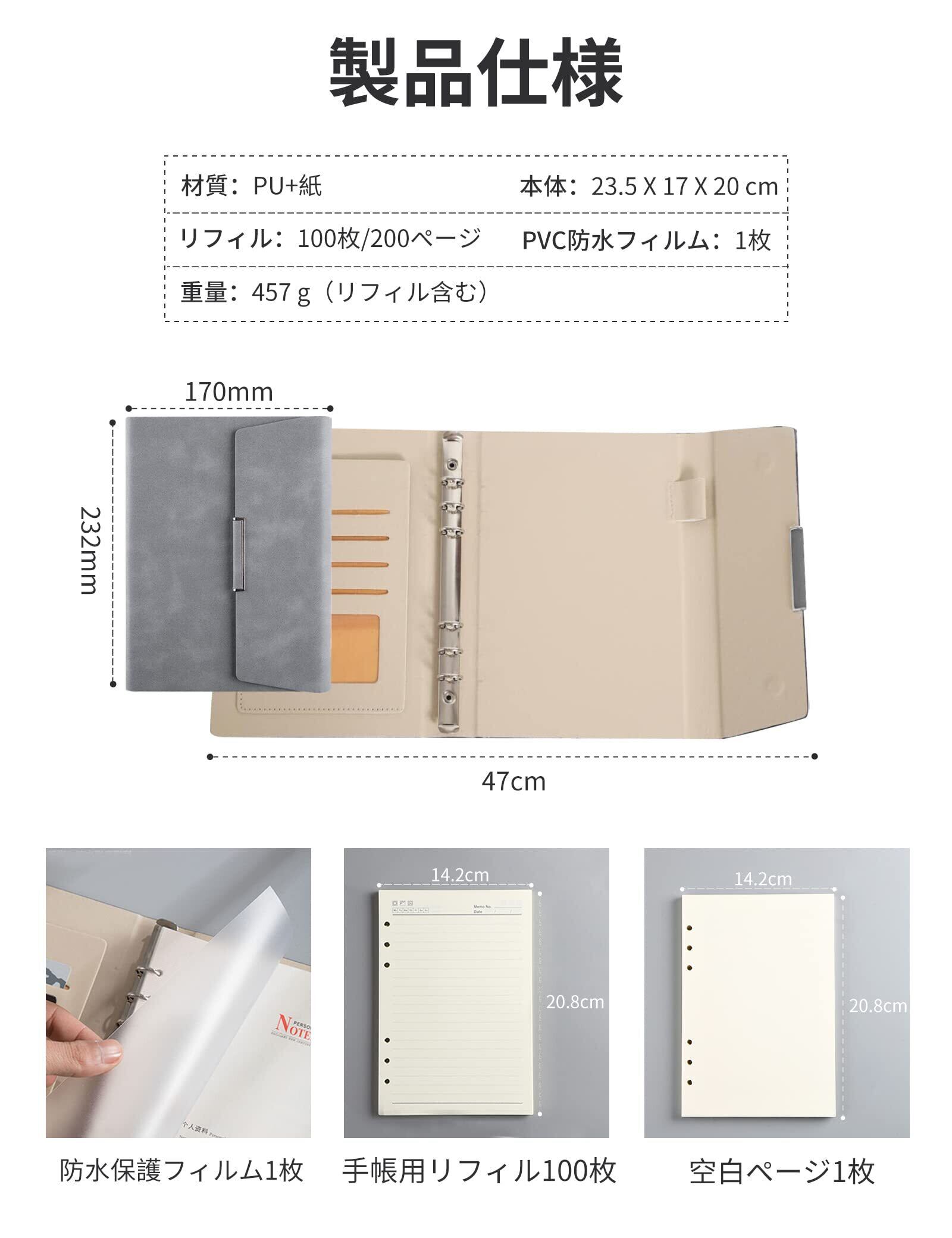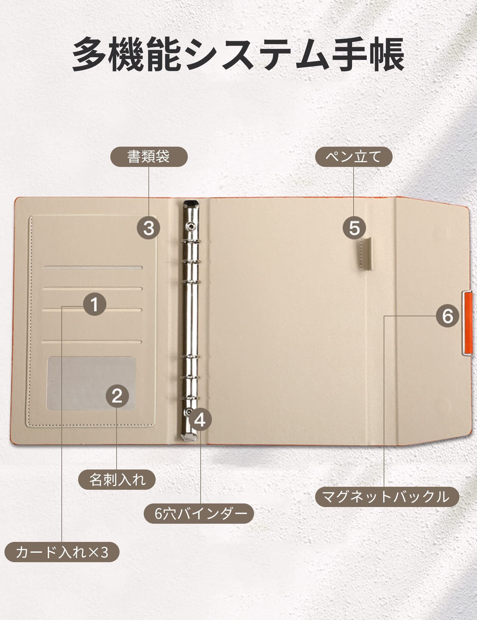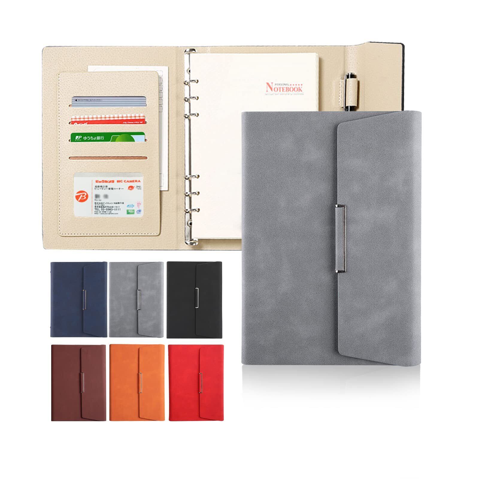 ALLMIRA システム手帳 a5 6穴 PUレザー 革 リング ノート バインダー 手帳カバー a5サイズ 三つ折り リフィル付き メモ帳 カード収納 ビジネス手帳 ルーズリーフ手帳 (グレー) | kki