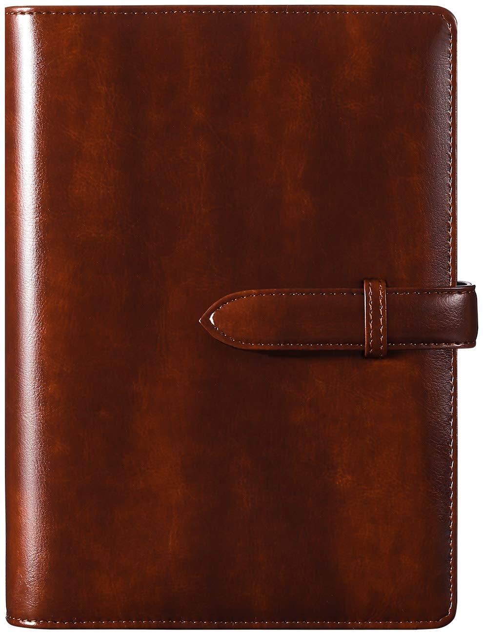 【RIHUA】 システム手帳 A5 ノート 6穴リング メモ帳 リフィル付き スケジュール帳 カード収納 革 a5 ビジネス手帳 オフィス用品 (ブラウン)