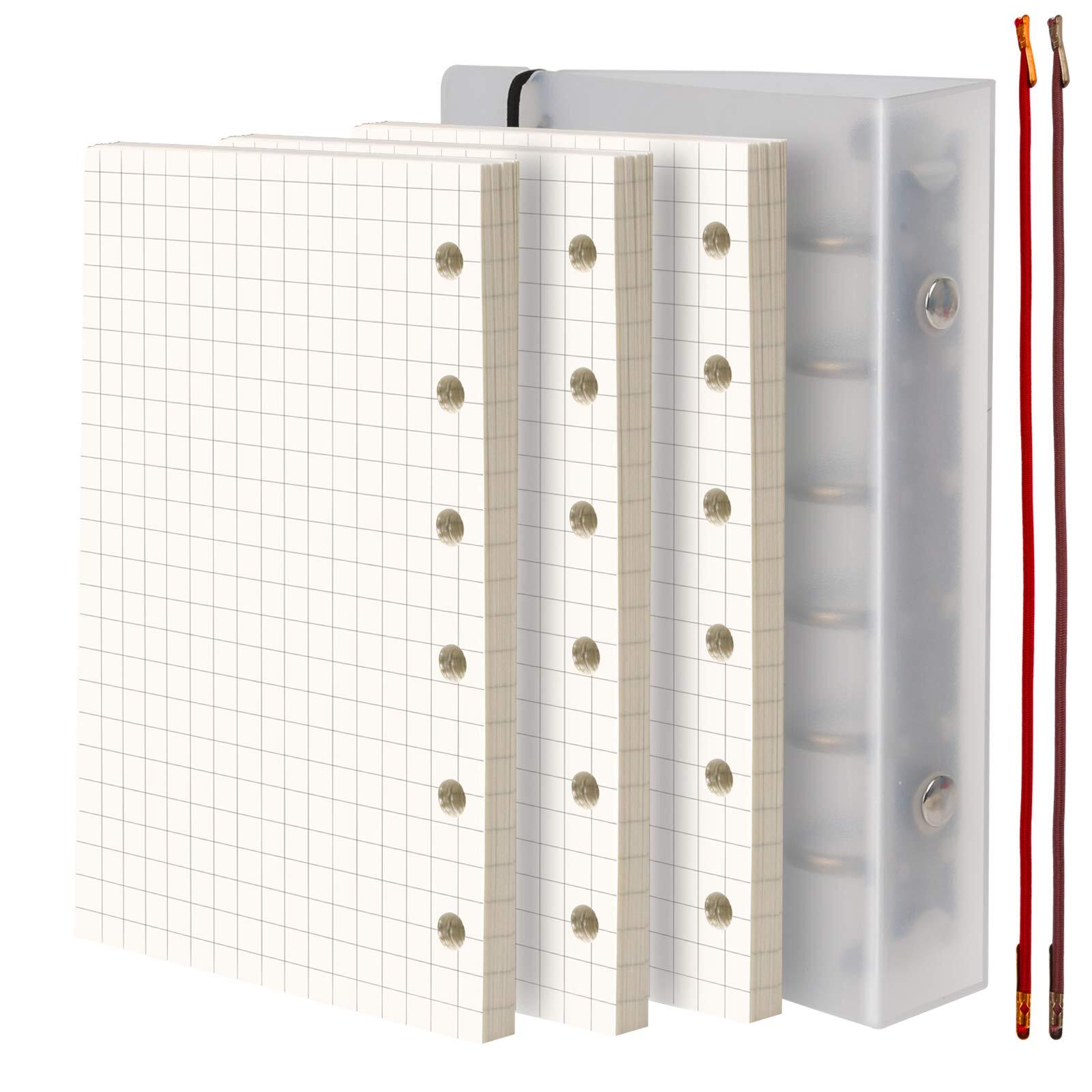 Leobro メモ帳 システム手帳 ミニ6穴 ポケットサイズ 手帳リフィル3 冊セット 135枚紙 クリーム 方眼 6穴 a7 ノート メモ バインダー
