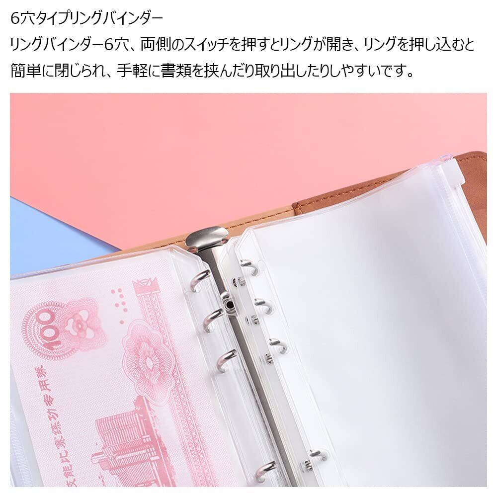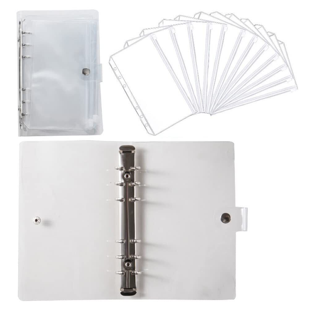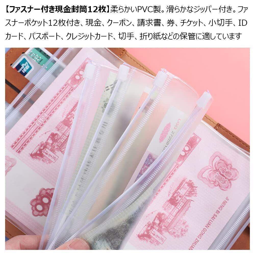 Costowns A6予算バインダー ジッパー封筒付 6穴 予算バインダーポケット12個付き ペンホルダー付き 5枚カード収納可 PUレザー予算管理用 現金用マネーオーガナイザー お金管理 手帳 家計管理 書類 札入れ 伝票 名刺 メモ紙入れ 10色選択 ct-68 (とうめい) | kki