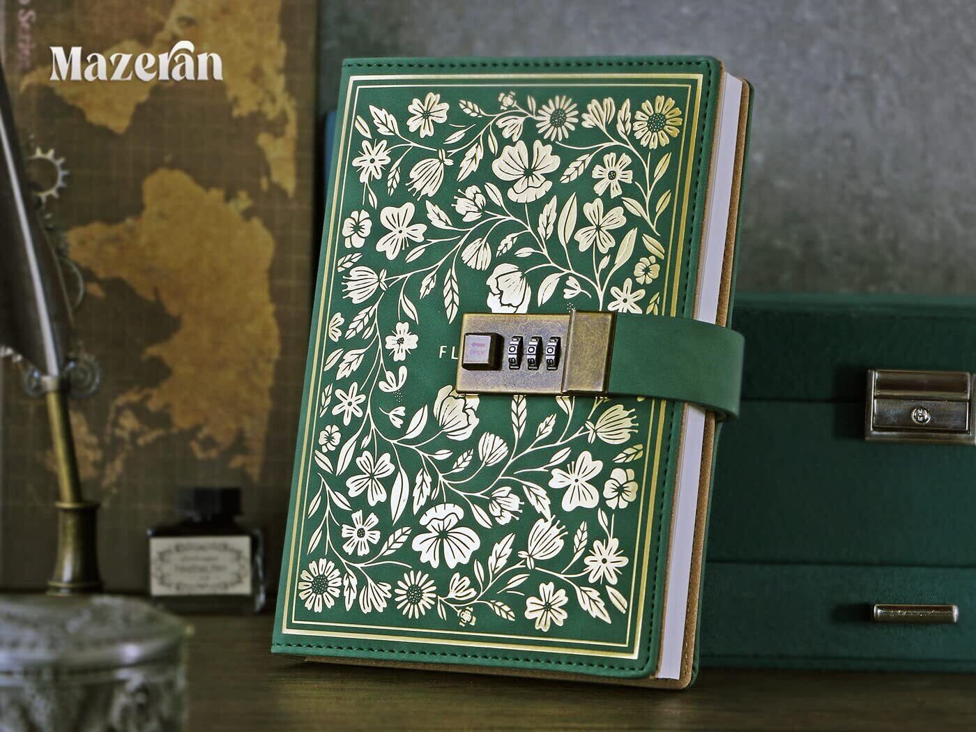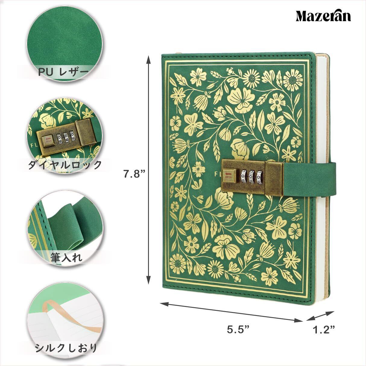 Mazeran鍵付きノート、PUレザーダイヤルロックノート旅行日記帳、レトロB6ロック横罫エレガント手帐秘密ロック整理 文房具 学用品 メモ帳 帳簿、学生、女の子、女性、娘のプレゼント