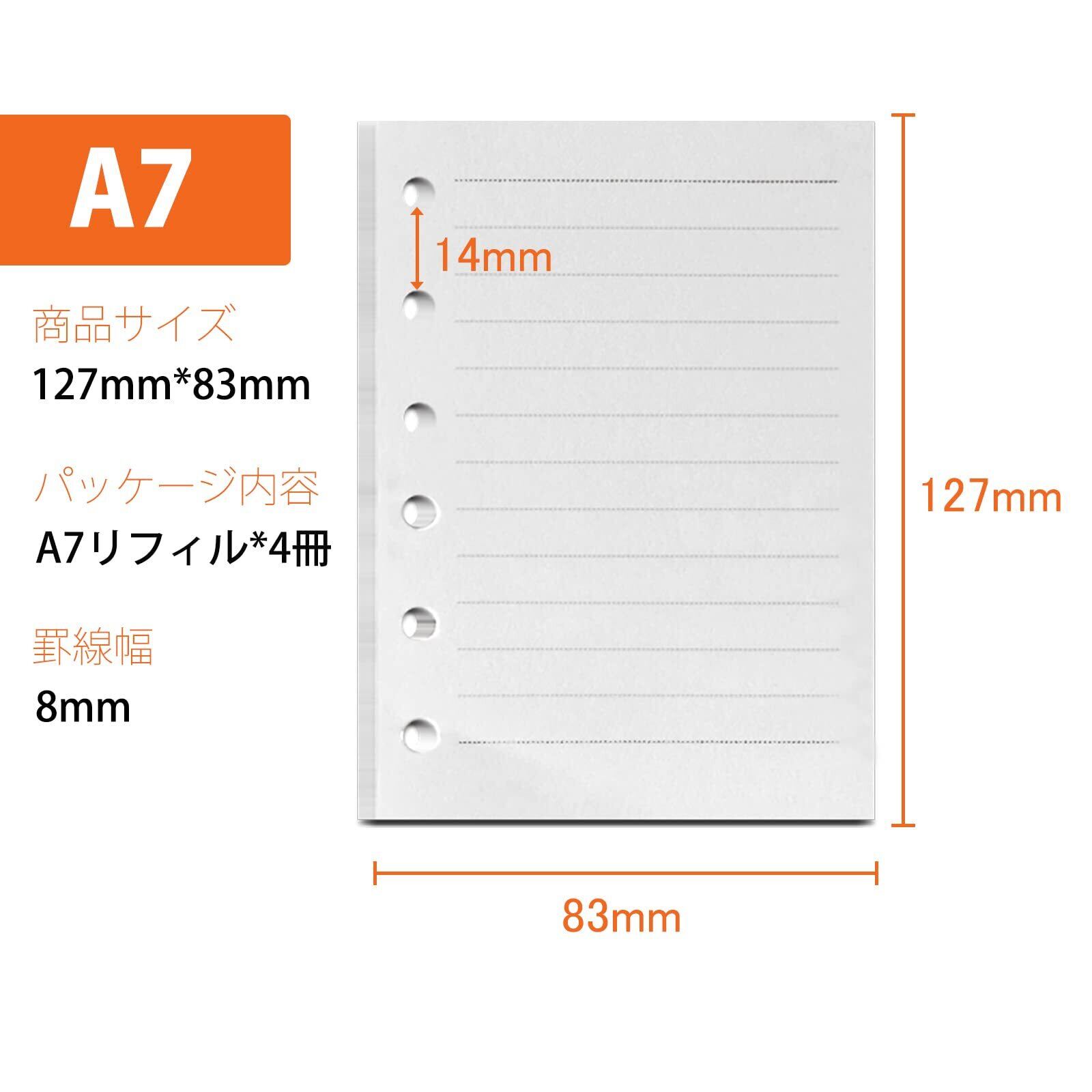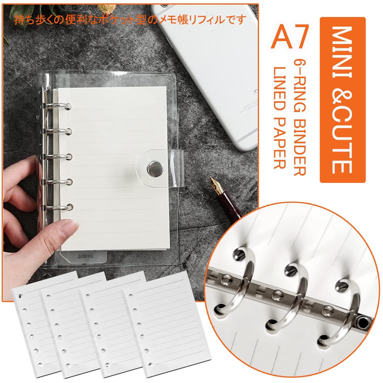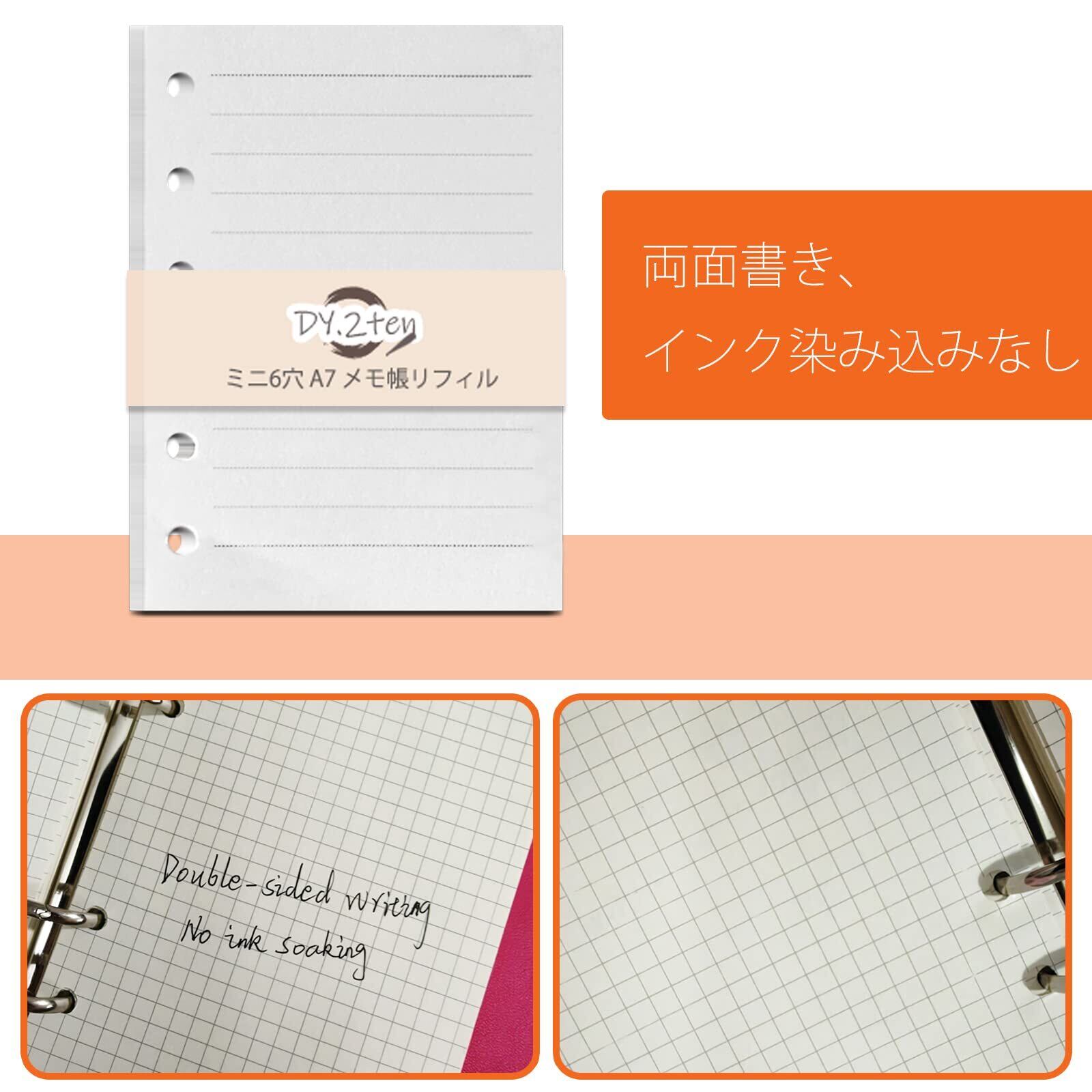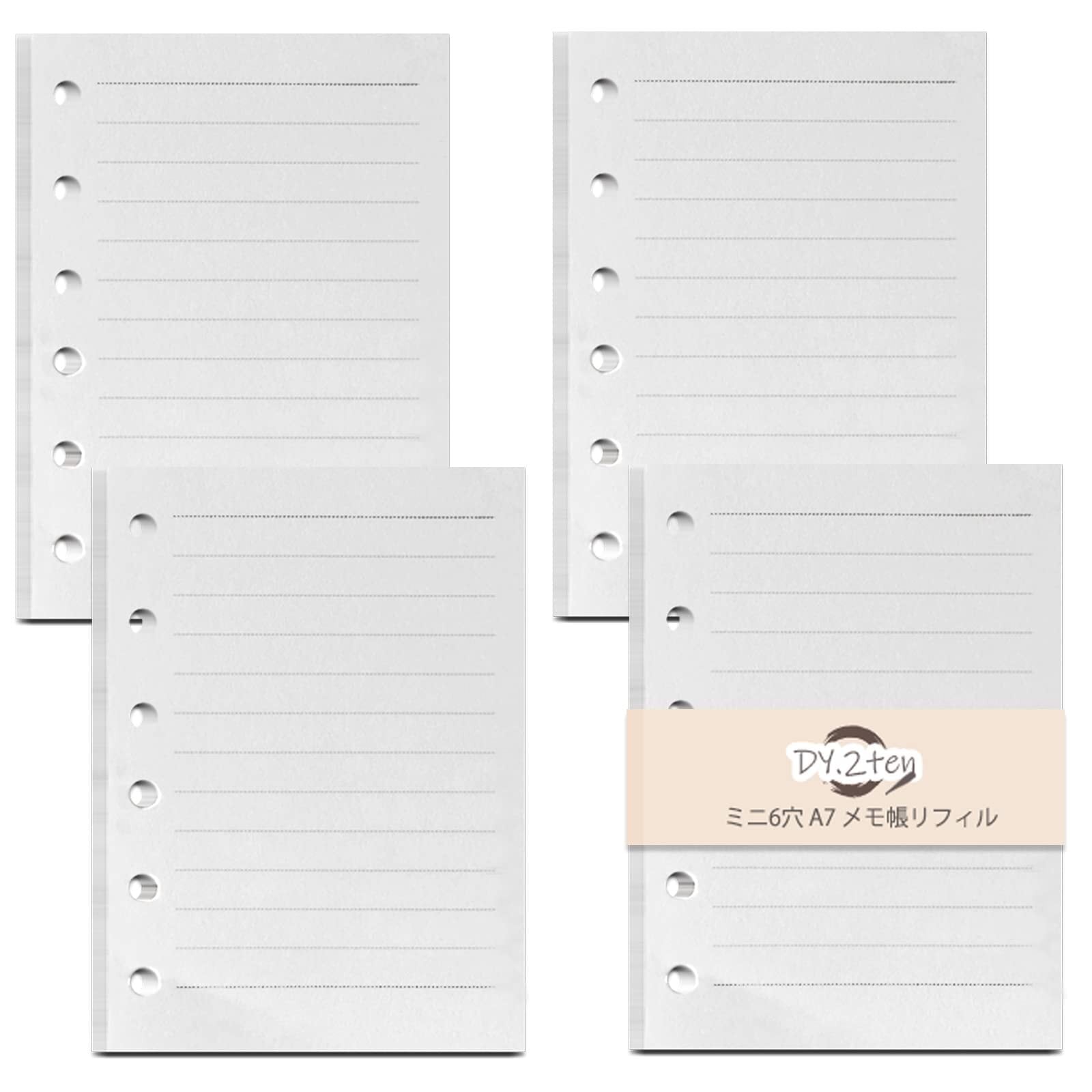 手帳リフィル ミニ6穴 横罫 A7 【4冊セット】 180枚 6穴 DY.2ten システム手帳 メモ帳 リフィル ポケットサイズ レフィル 中身 A7
