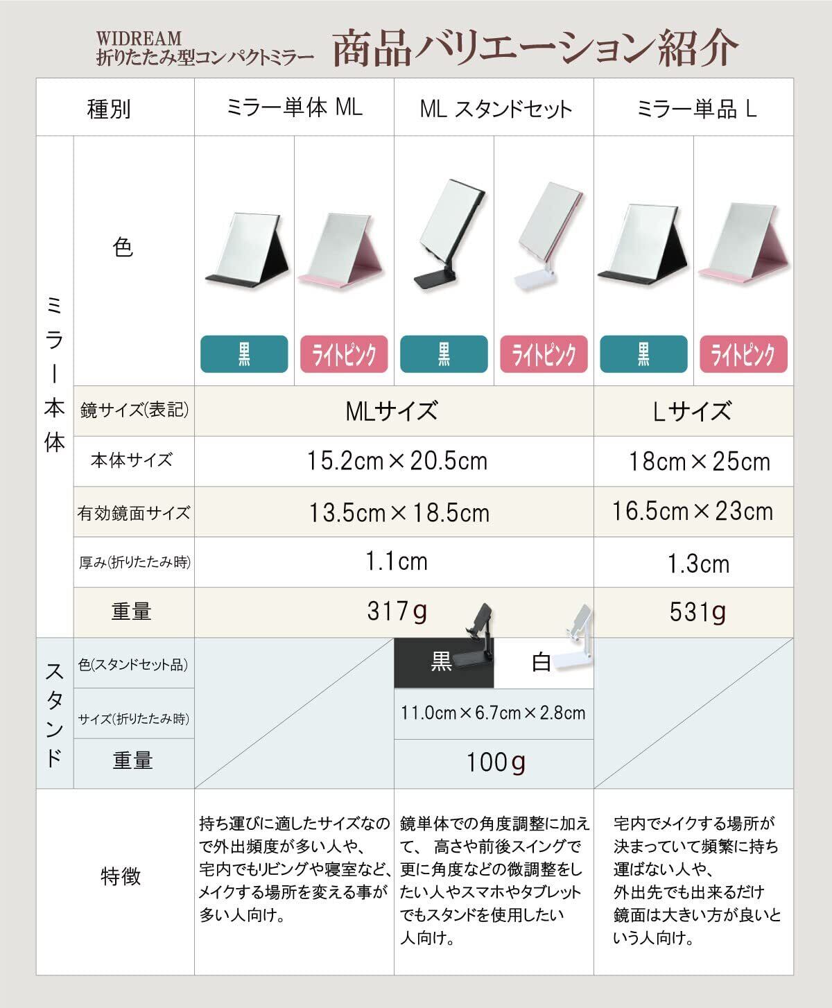 WIDREAM【メイクアップアーティスト監修】角度自在調整&他社より1サイズ大きい鏡面の折りたたみ折立鏡 鏡 卓上鏡 スタンドミラー コンパクトに折りたたんで持ち運びにも◎(役立つメイクminiブック付属) (黒, ML) | kki