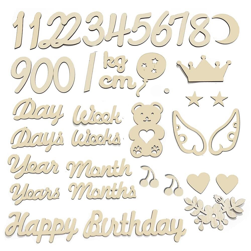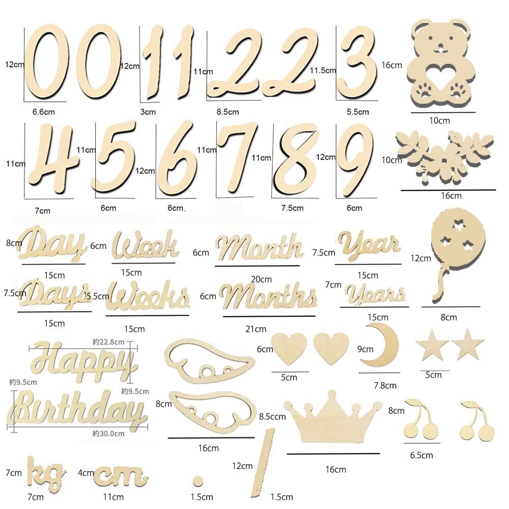木製 レターバナー 40枚セット 月齢フォトグッズ ニューボーンフォト ウッドレター 月齢カード マンスリーカード 記念日フォト 撮影道具 記念写真 出産祝い 成長記録 プレゼント 誕生日 | kki