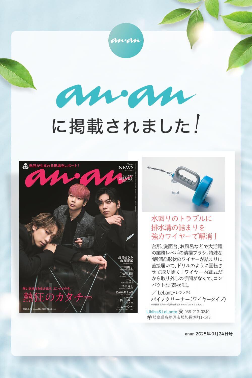 【anan掲載モデル】 LeLante パイプクリーナー ワイヤー 排水管 掃除 排水溝 つまり ワイヤーブラシ (5m)
