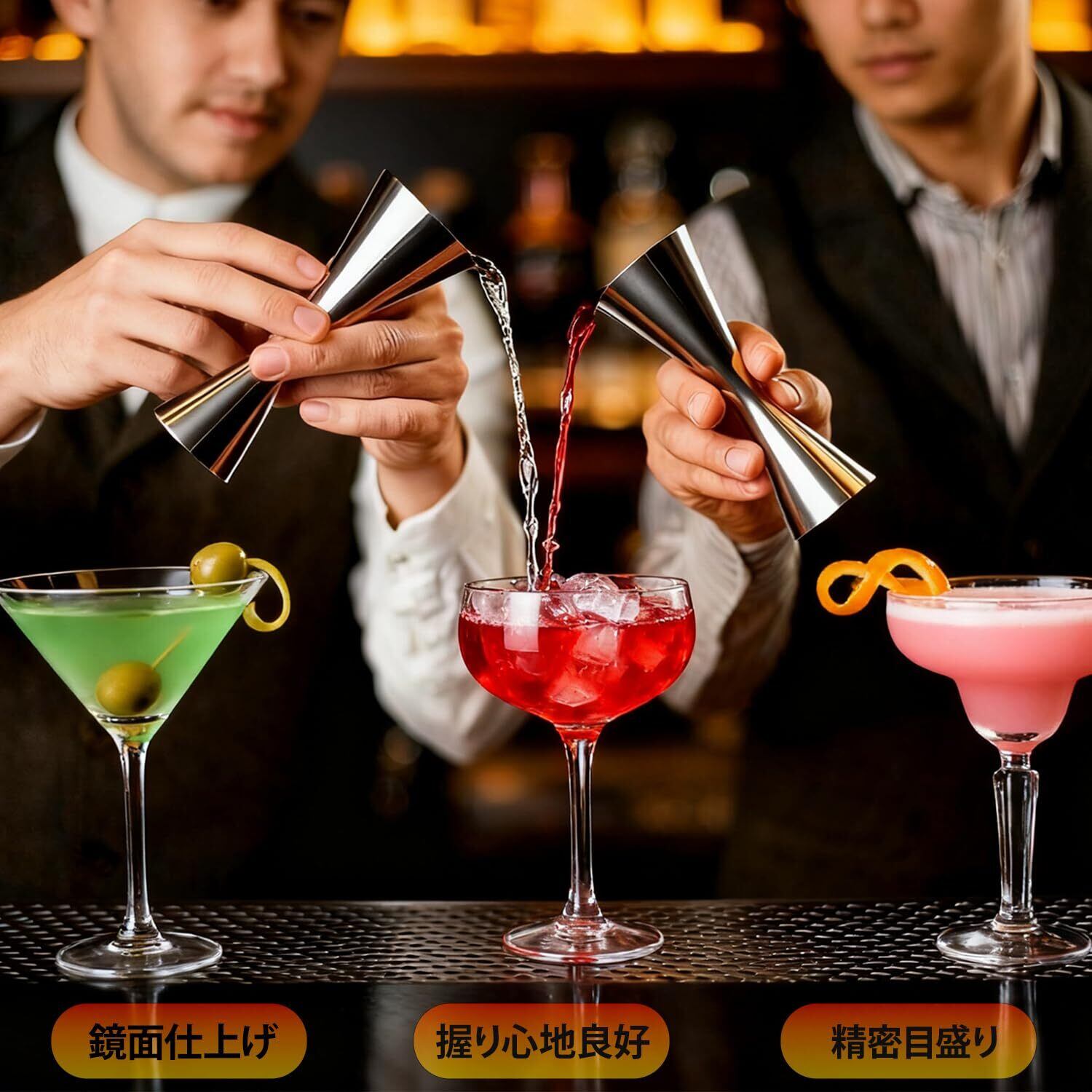 メジャーカップ 30/45ml 目盛り付き カクテル メジャー ジガーカップ メジャーカップ ウイスキー カクテル 計量カップ ダブルヘッド 一体型 ステンレス鋼 (シルバー, 30/45ml) | kki