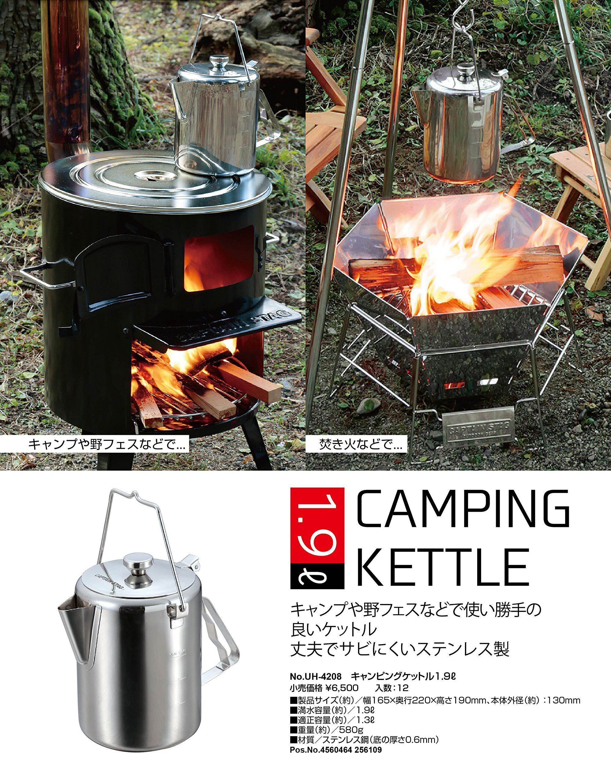 キャプテンスタッグ(CAPTAIN STAG) キャンプ バーベキュー用 やかん ケトル キャンピングケットル 1.9L UH-4208