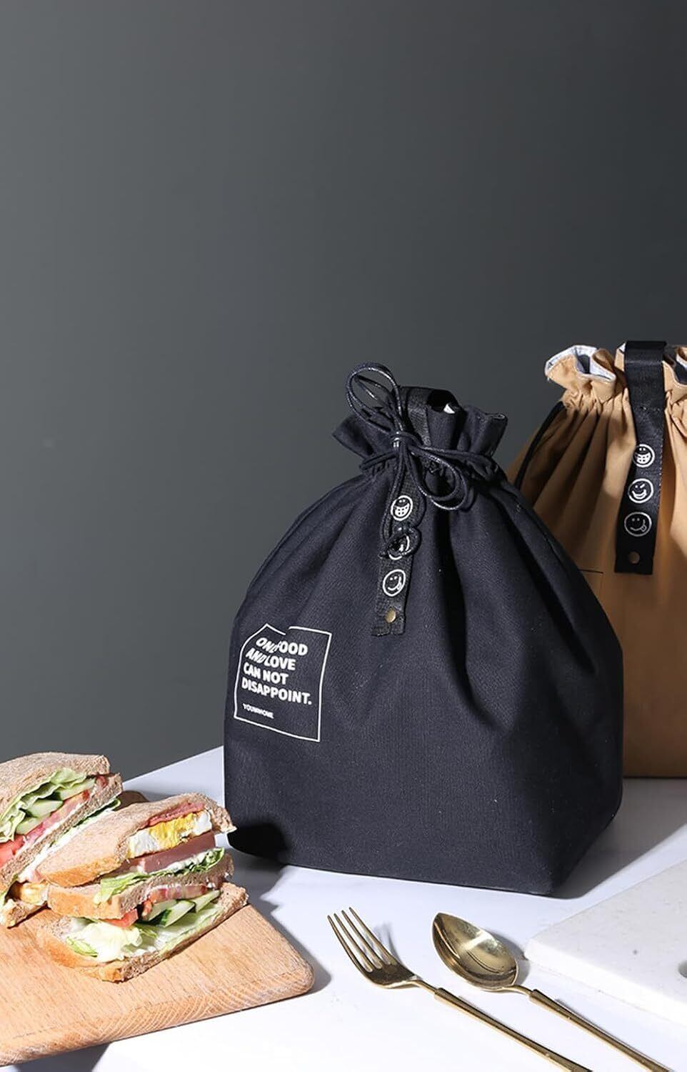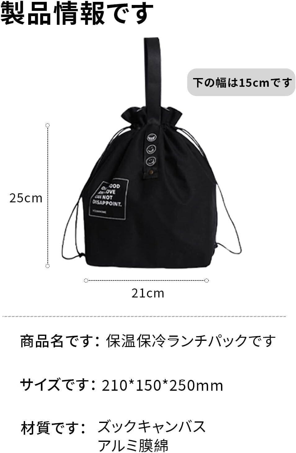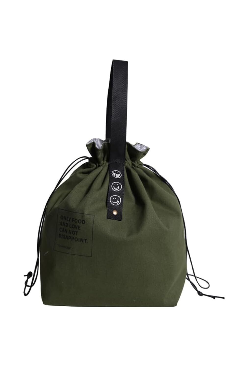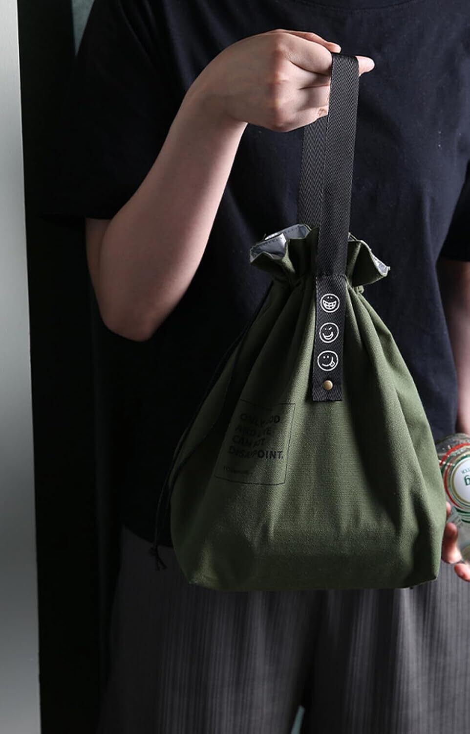 保冷 保温 綿100%のキャンバス生地 ランチバッグ-内側断熱アルミウール綿 大容量/便利/シンプル/ファッション/無地で でシンプルな 巾着バッグ-耐久性 防水 アウトドアキャンプピクニックバッグなどに 男女兼用 お弁当袋 (ミリタリーグリーン) | kki