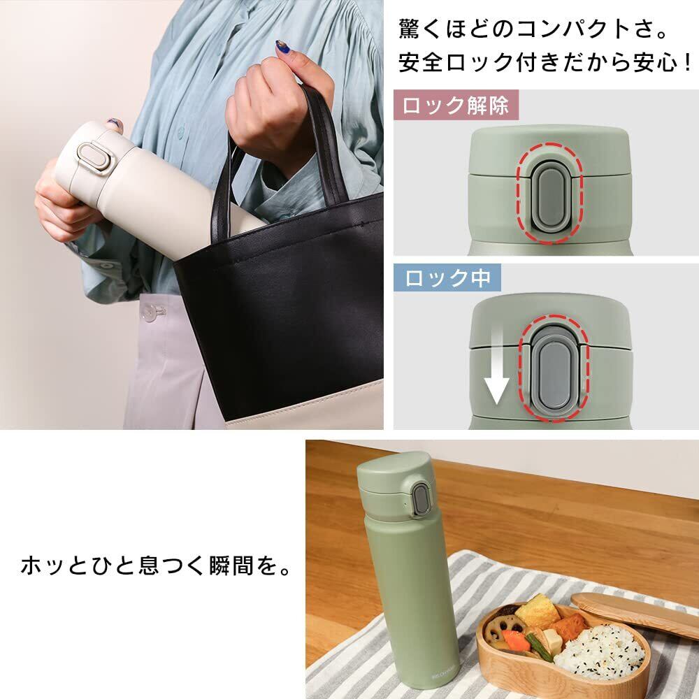 アイリスオーヤマ 水筒 500ml 真空断熱6時間キープ 片手で開け飲みしやすい ワンタッチ オフィスで使いやすい 直飲み 丸洗い出来てお手入れラクラク ステンレスマグボトル ペールグリーン SM-O500 | kki