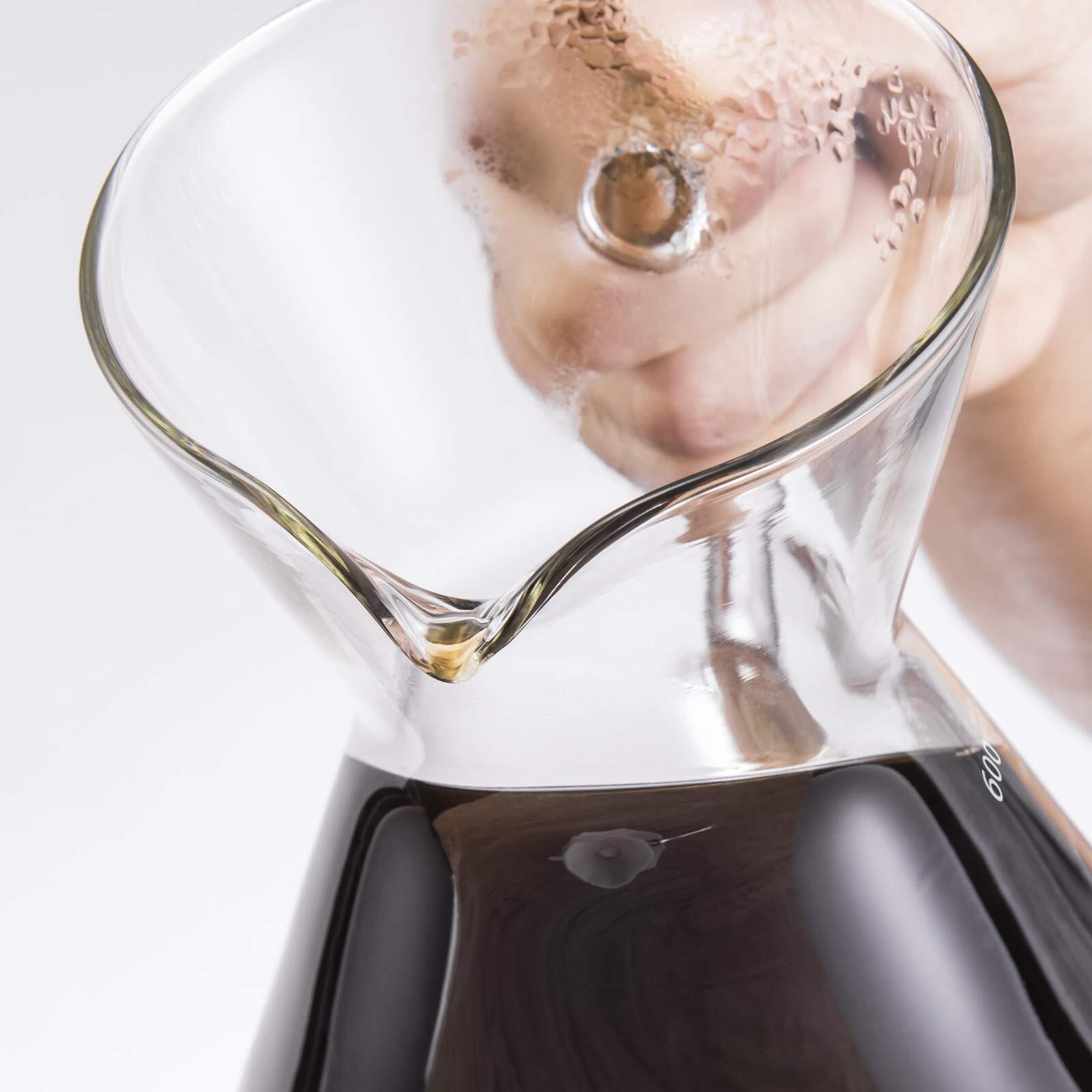 Love-KANKEI コーヒーサーバー コーヒードリッパー コーヒーカラフェセット プレゼント スポンジブラシ付属 耐熱ガラス ステンレスフィルター 2層メッシュ フィルター不要 電子レンジ可 (600ml) | kki