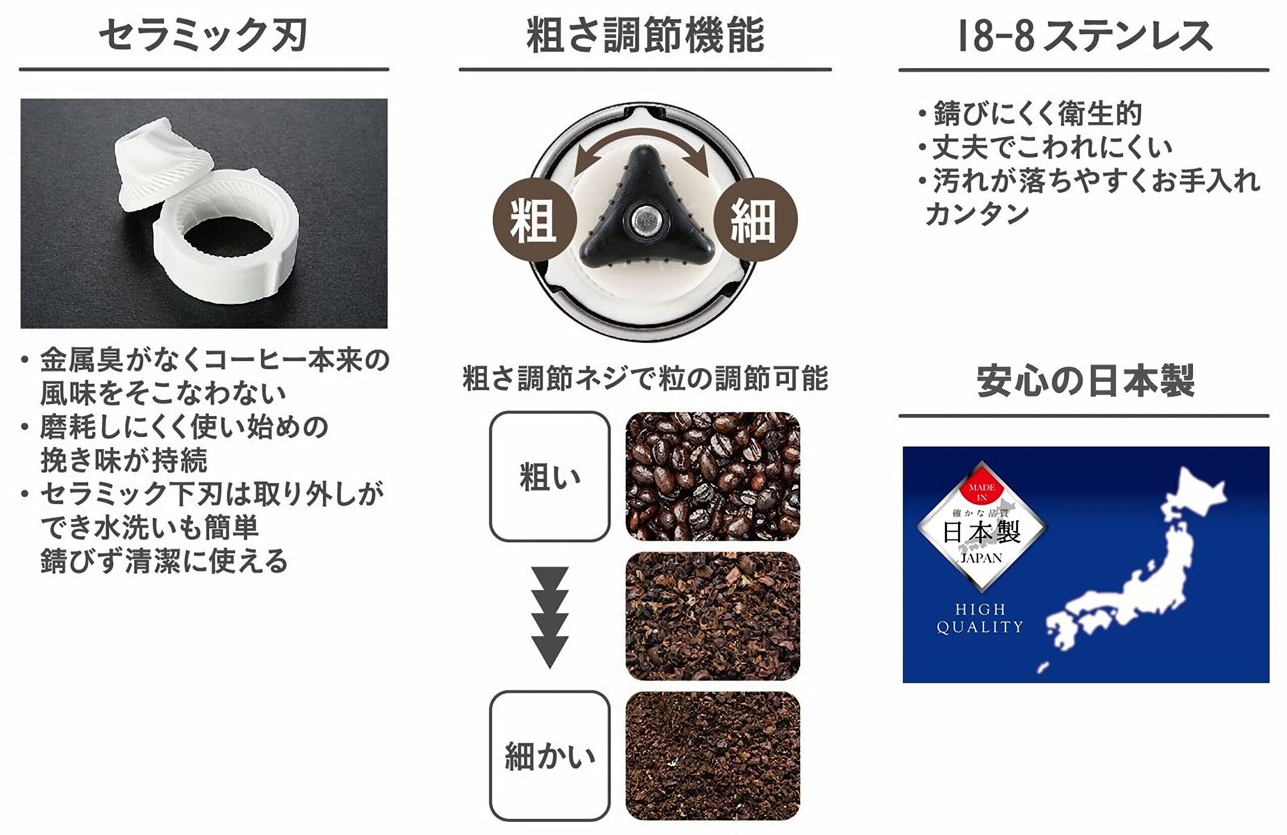 キャプテンスタッグ 日本製 コーヒーミル セラミック刃 ハンディータイプ Sサイズ 18-8 ステンレス製 UW-3501