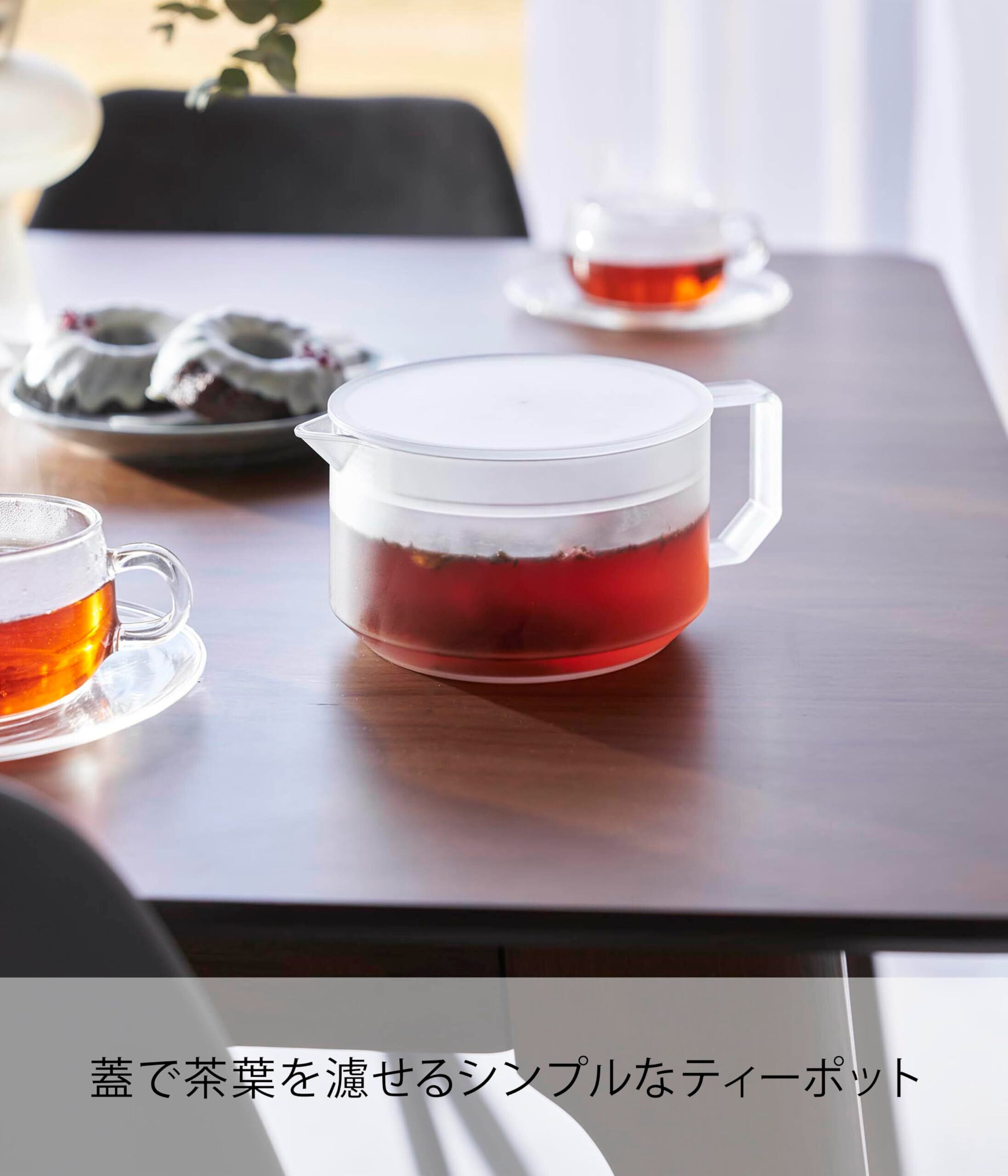 山崎実業(Yamazaki) ティーポット ホワイト W13.2×D17.6×H7.9cm(ハンドル含む) タワー tower 600mL 食洗機・電子レンジ対応 お手入れ簡単 蓋 茶こし 一体型 1672 | kki