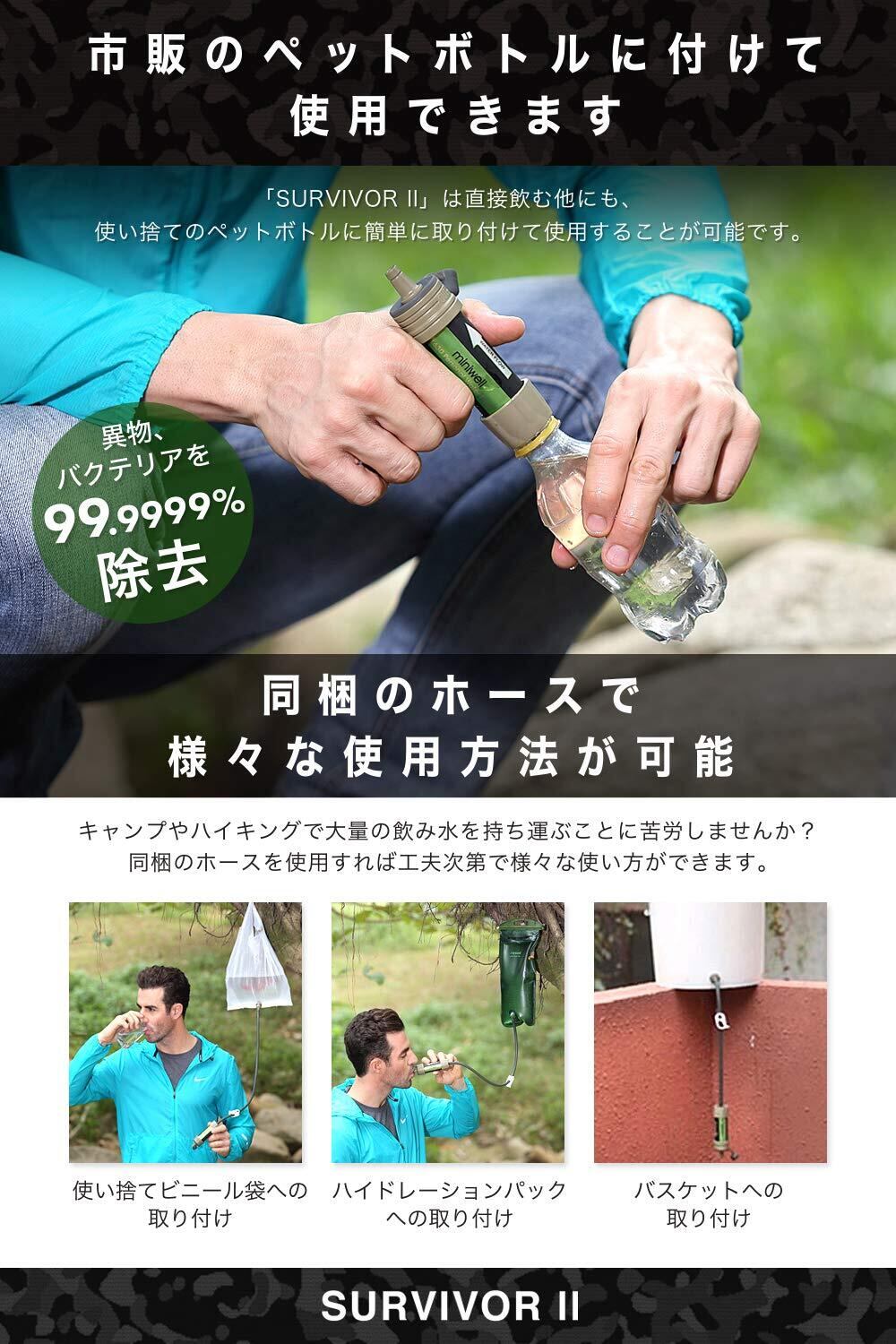 99.9999%の異物 バクテリアを除去 携帯用浄水器 ペットボトルに接続可で使いやすい 災害時にも