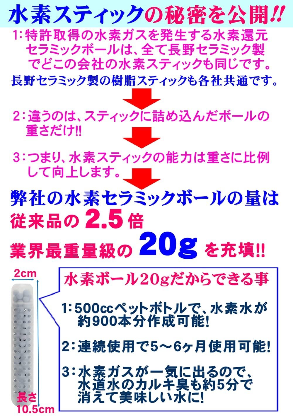 取得 水素水生成スティック 2本 水素発生セラミック20g 溶存水素濃度最高値 1.688ppm