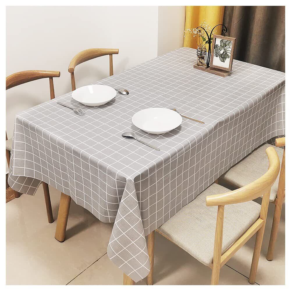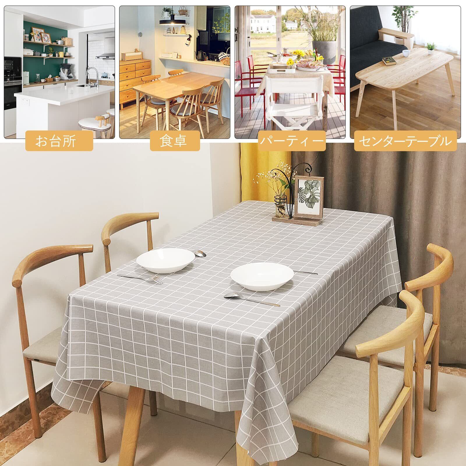 テーブルクロス テーブルカバー 137*225cm 撥水 防水 防油 汚れ防止 ずれにくい PVC製 おしゃれ 手入れ簡単 多用途 格子柄 (137*225cm, ふじいろ)